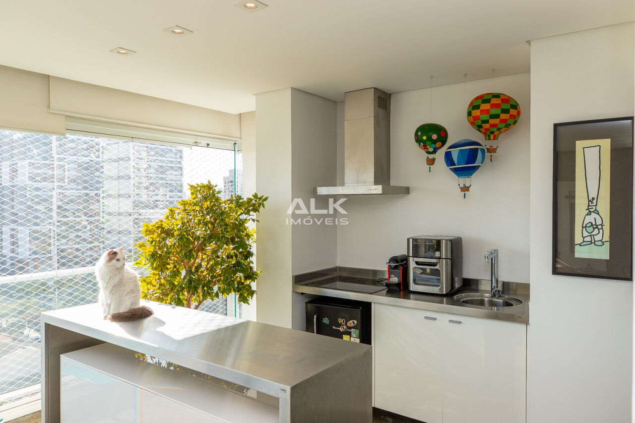 Apartamento em andar alto, com sala ampla, varanda gourmet, 2 suítes, lavabo, cozinha e área de serviço bem espaçosas, com quarto e banheiro de empregada.