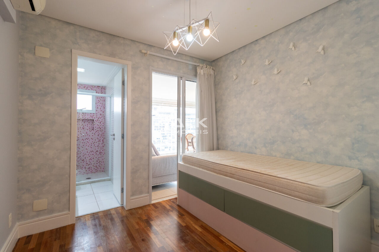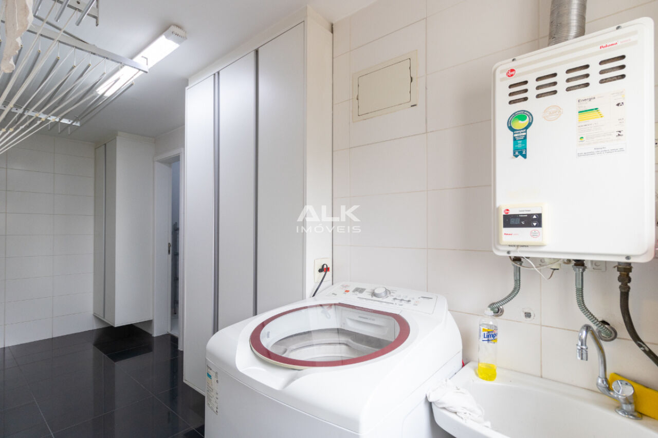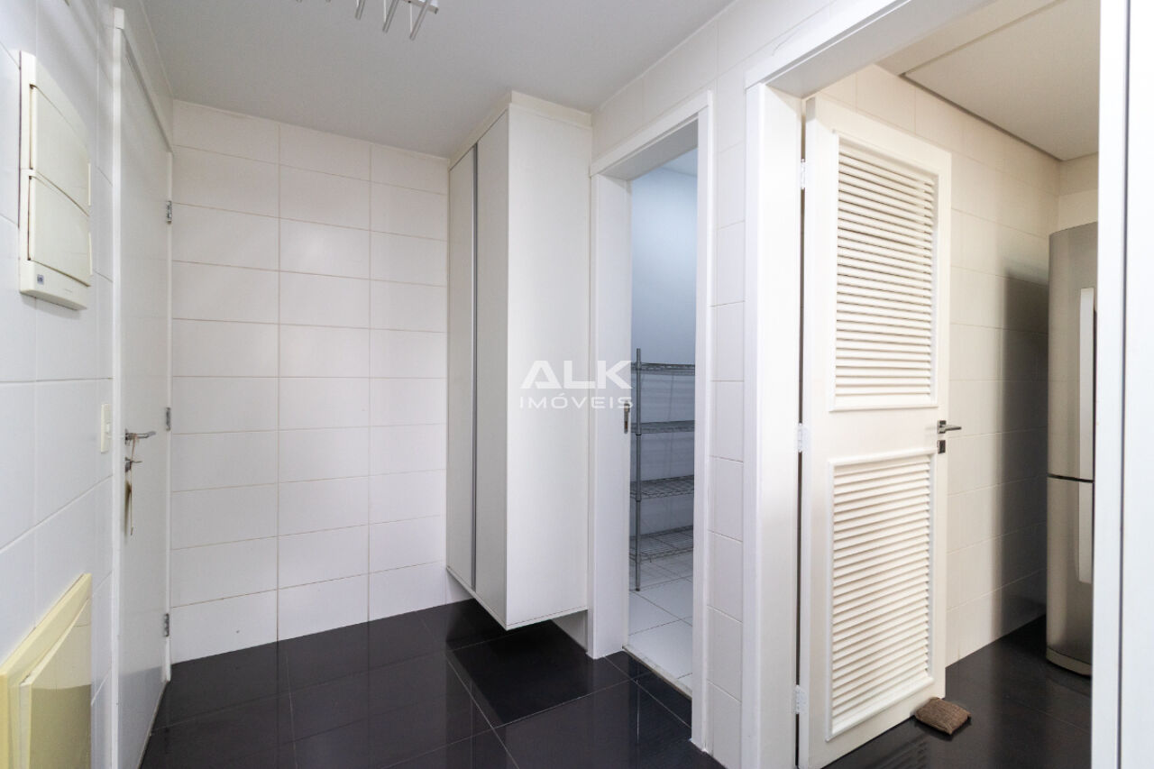 O apartamento ainda conta com área de serviço com quarto e banheiro de funcionário, 2 vagas de garagem indeterminada e depósito.
