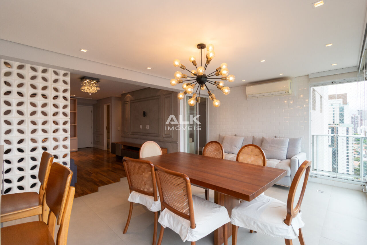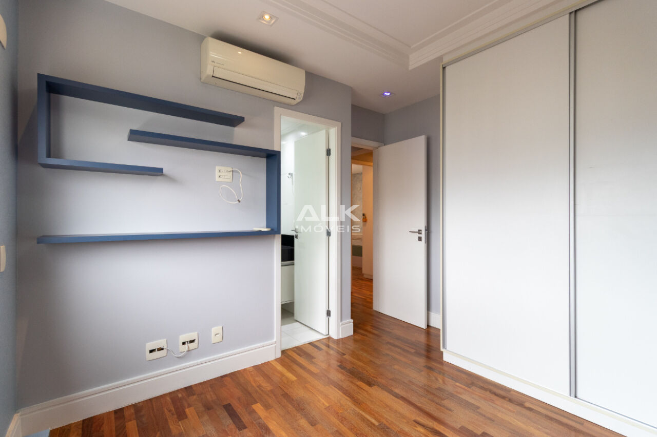 O imóvel possui 138 m² com 3 suítes, a master com closet espaçoso, varanda gourmet com churrasqueira, projeto de arquitetura com acabamentos de alto padrão, piso de madeira, armários embutidos e ar-condicionado em todos os ambientes.