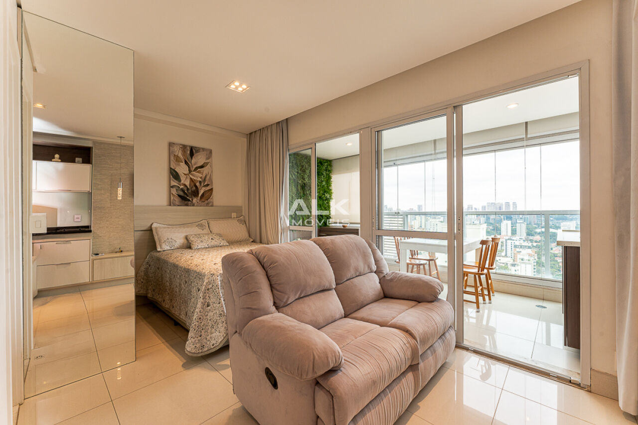 Localizado no 22º andar do Condomínio Cosmopolitan High Garden, na Avenida Santo Amaro, este studio de 33m² com 1 vaga de garagem é a união perfeita entre conforto, praticidade e sofisticação. Completamente mobiliado, o espaço é ideal tanto para morar quanto para investir. O ambiente interno, com móveis planejados e eletrodomésticos, é moderno e acolhedor. A varanda, um verdadeiro diferencial, é envidraçada e perfeita para quem valoriza um espaço multiuso muito bem aproveitado. A vista é deslumbrante até nós dias mais cinzentos. Imagine só o pôr do sol!