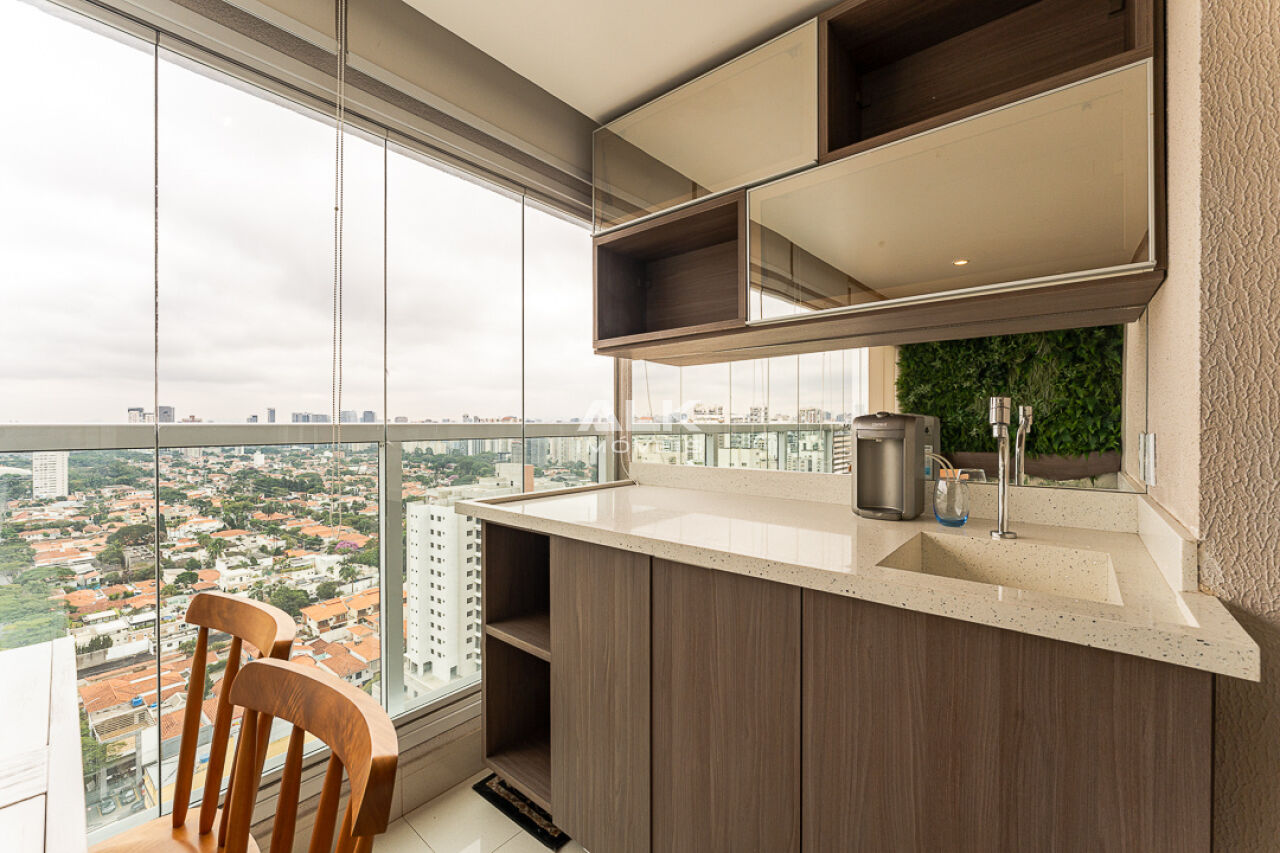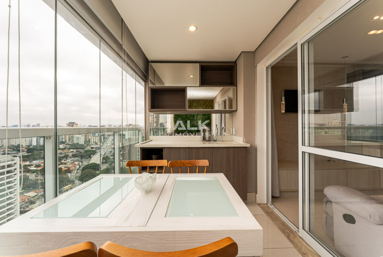 Studio impecável de 33m² com 1 vaga, mobiliado e com lazer de clube no Campo Belo