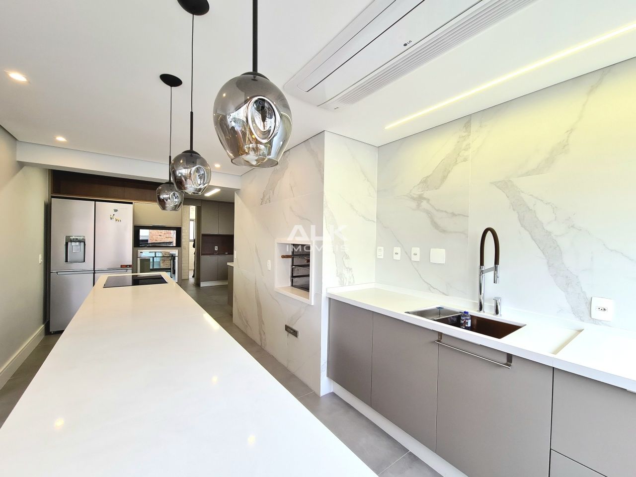 Ar-condicionado de teto em todos os ambientes.