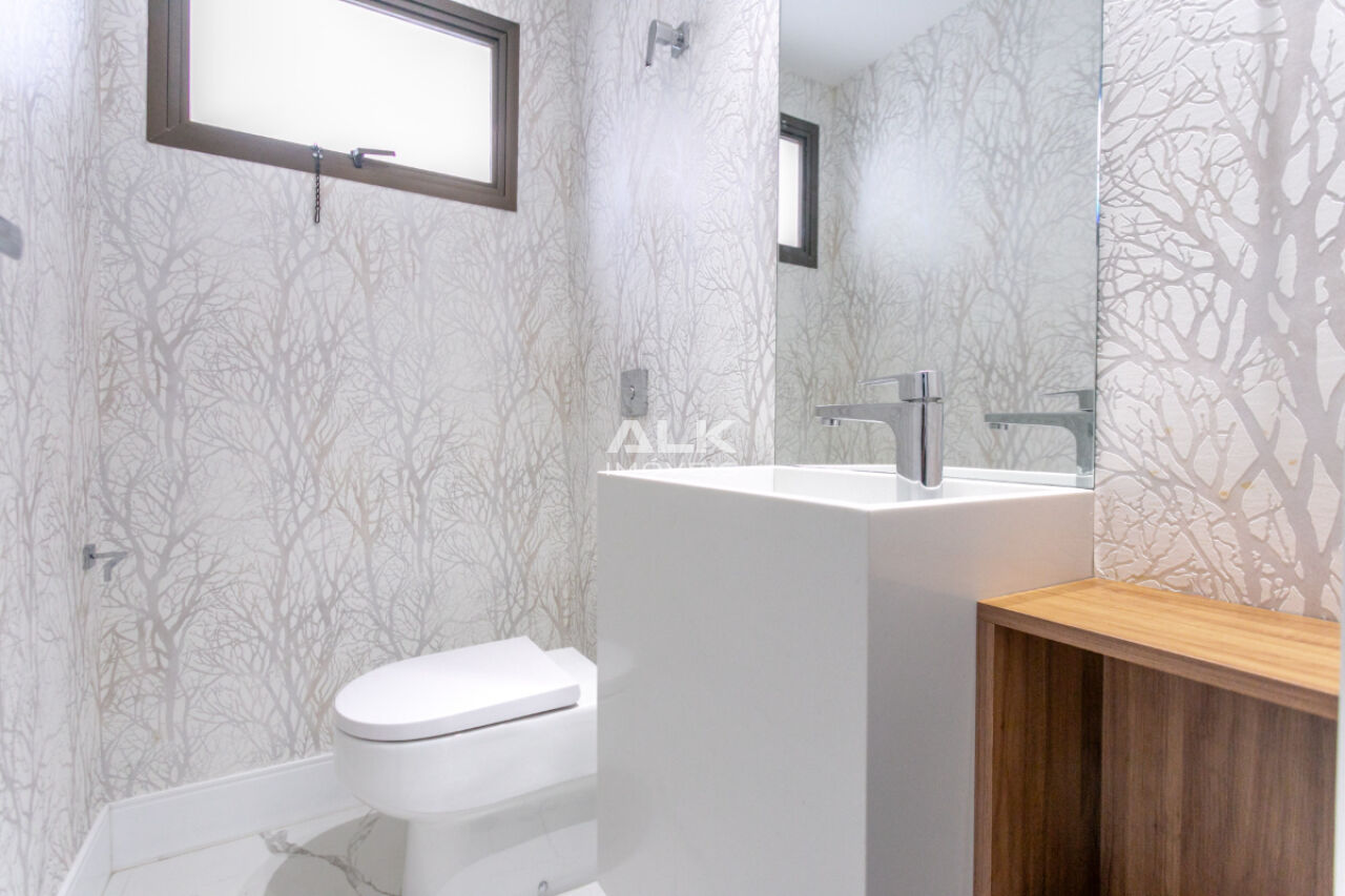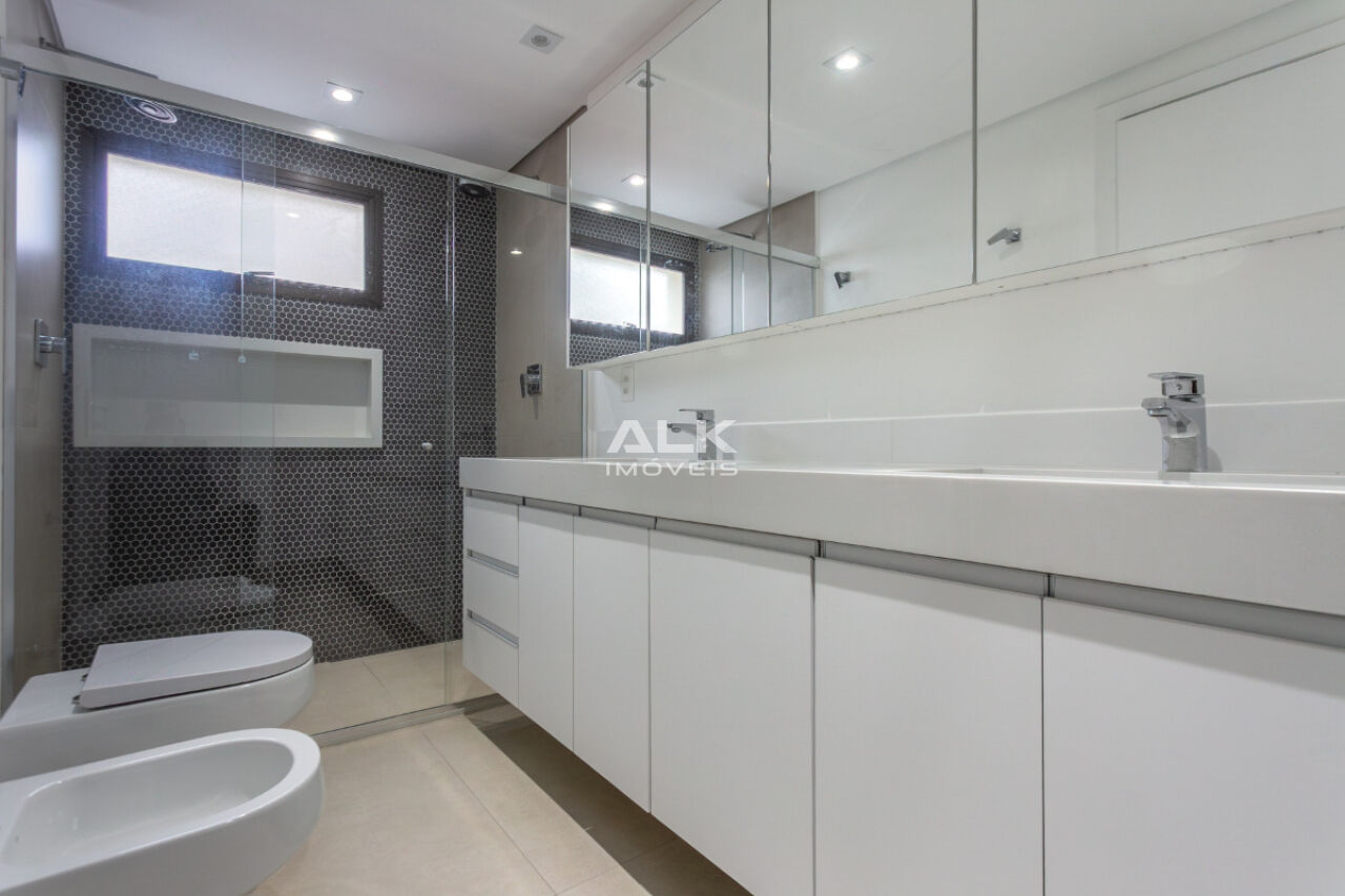 3 suítes generosas, incluindo uma Suíte Master com banheiros Sr. e Sra., banheira de hidromassagem e sauna privativa um verdadeiro refúgio de bem-estar