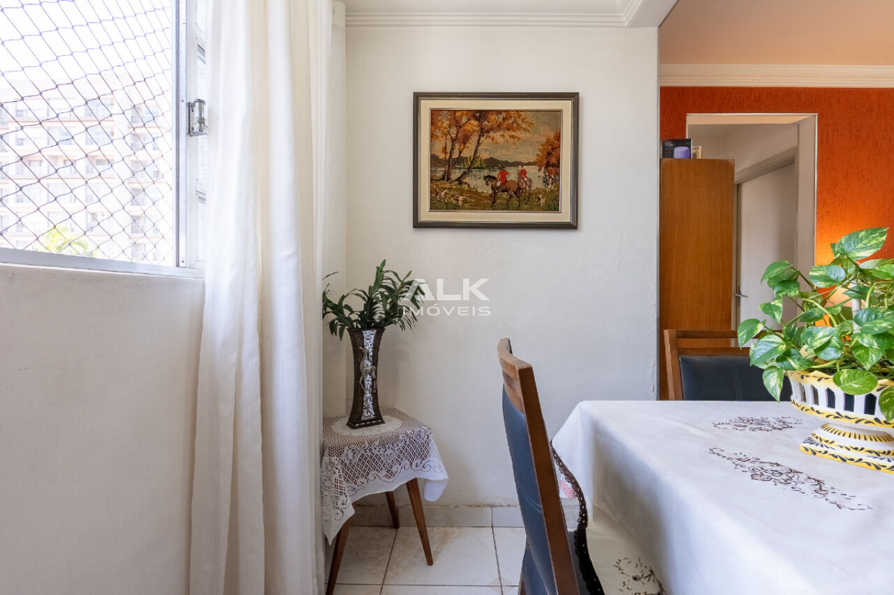 O apartamento conta com dois dormitórios, sendo um deles com armários planejados. A sala, ampla e bem iluminada, acomoda dois ambientes, com excelente circulação de ar. A cozinha é espaçosa e já vem com armários. O imóvel possui ainda um banheiro social, área de serviço e uma vaga de garagem.
