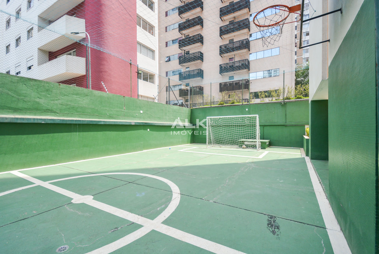 O edifício possui quadra poliesportiva, brinquedoteca, playground e salão de festas.