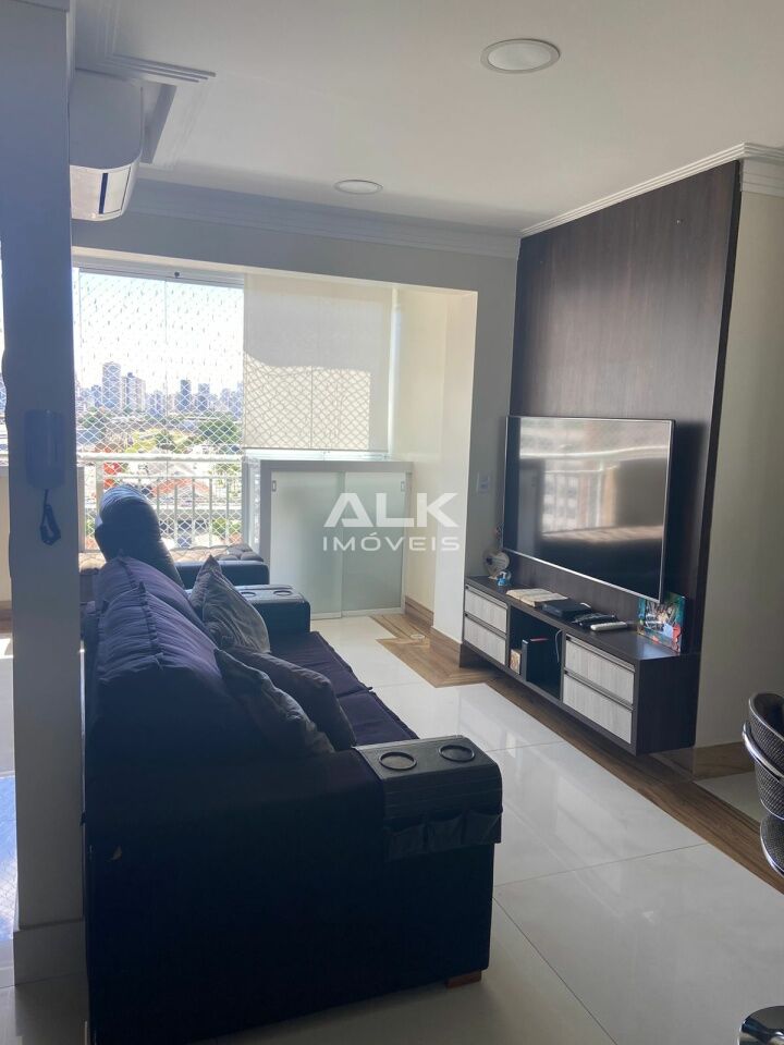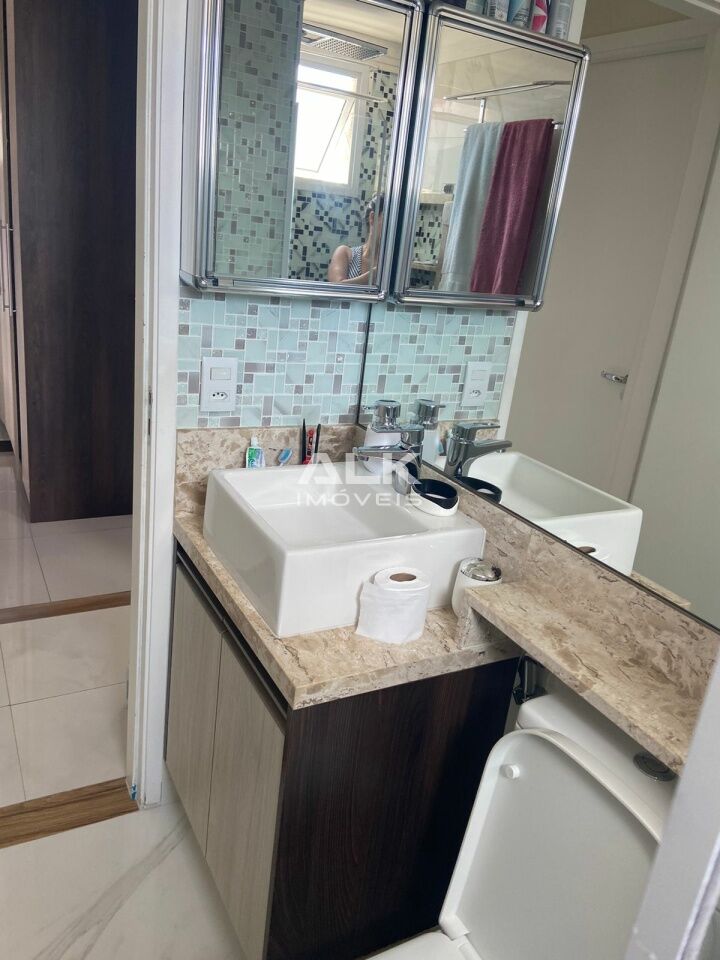 Apartamento com 2 dormitórios, área de serviço, banheiro, sala e cozinha, varanda e vaga de garagem. Prédio com academia, salão de festas, mini market, churrasqueira e sky lounge.