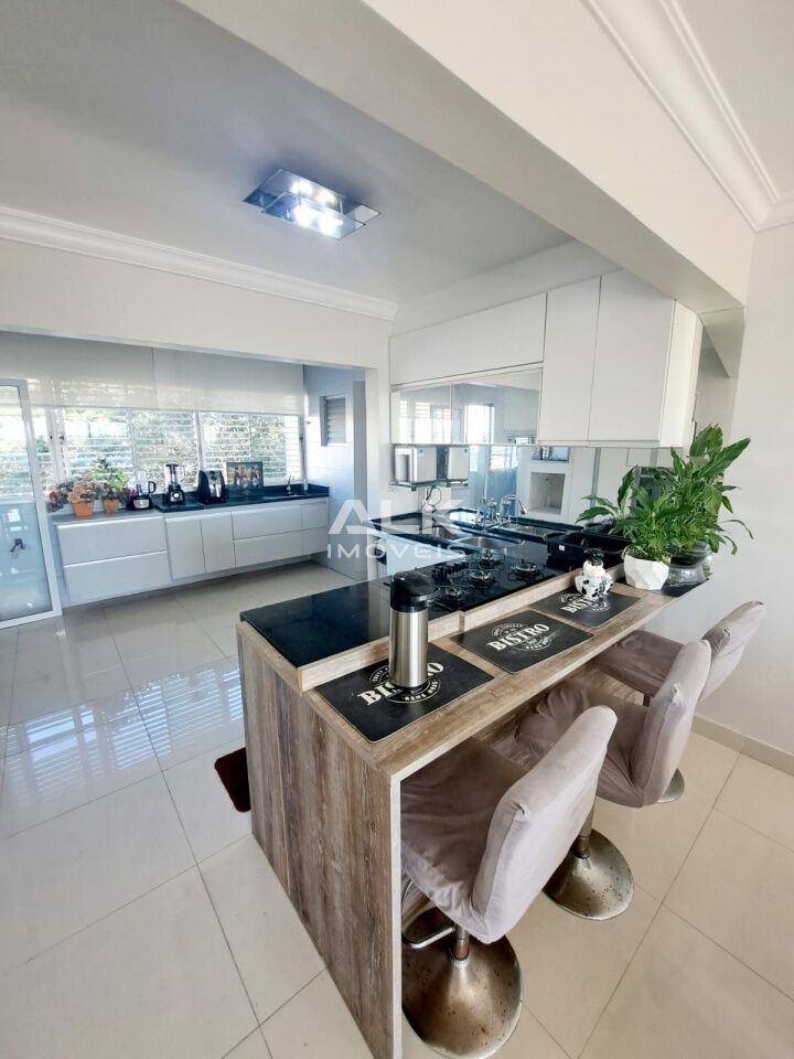 A área social é esplêndida, com uma ampla sala de estar que se destaca pela vista panorâmica, inundando o ambiente de luz natural e oferecendo um cenário espetacular para receber visitas ou relaxar em momentos tranquilos. Adjacente à sala de estar, encontra-se uma sala de jantar perfeita para desfrutar de refeições em família ou entre amigos.