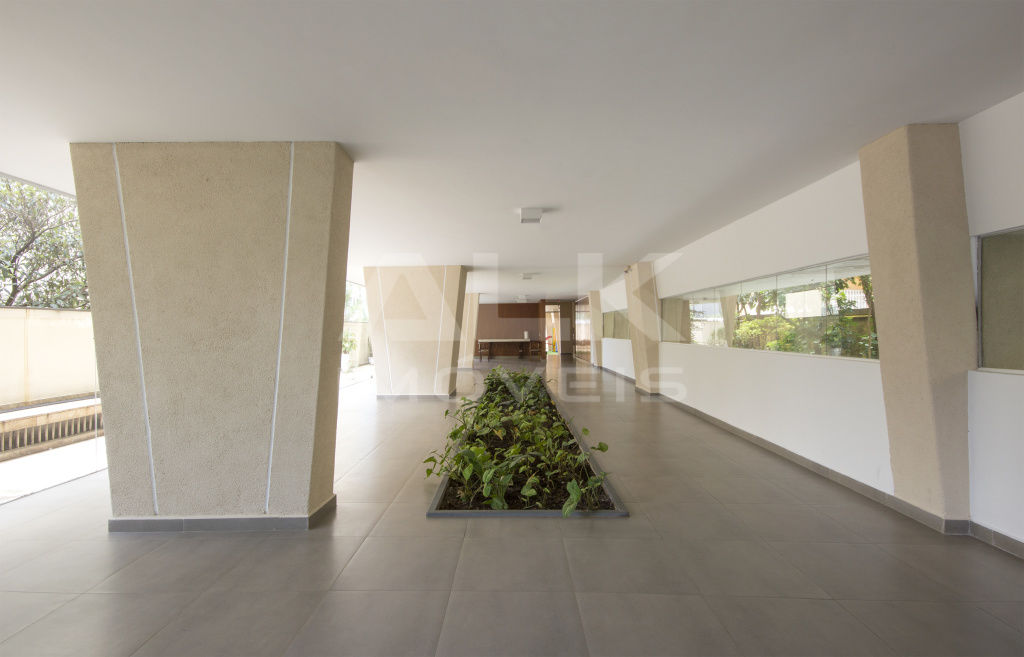A área íntima, isolada por um corredor, traz um layout bem distribuído. À direita, o banheiro social atende aos dois dormitórios, com ventilação natural, armário sob a pia e chuveiro elétrico. O primeiro quarto, à esquerda, possui grande janela, armário embutido de quatro portas em madeira de qualidade, podendo ser revitalizado do seu jeito. O segundo dormitório também conta com armário e janela ampla com vista lateral. A suíte é bem ventilada e espaçosa, comportando facilmente uma cama king size, possui armário embutido.