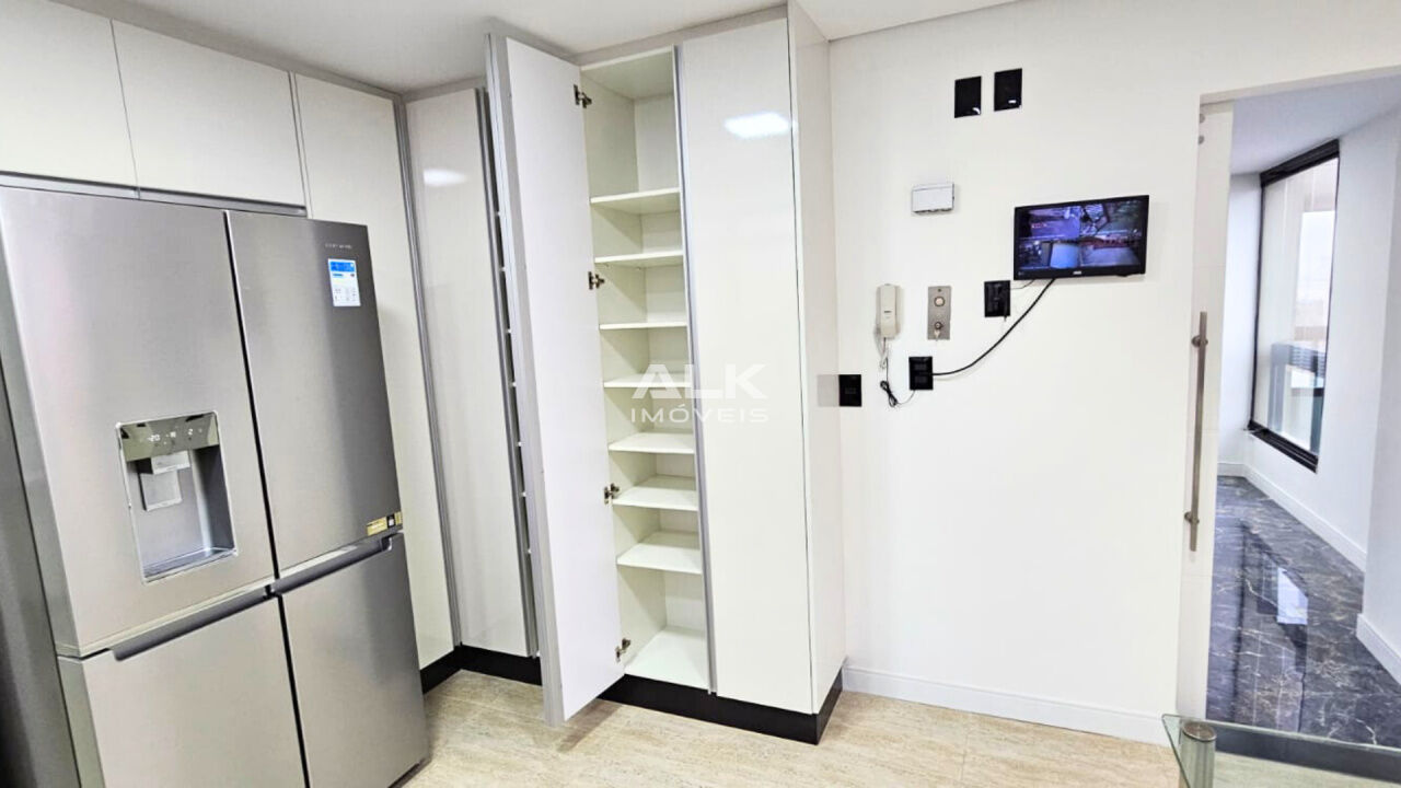 O apartamento também possui interfone com tela da suíte principal para a visualização da entrada de serviço, abundantemente armários novos em todo o imóvel, feitos sob medida de primeiríssima linha, além de um maravilhoso walk-in-closet.