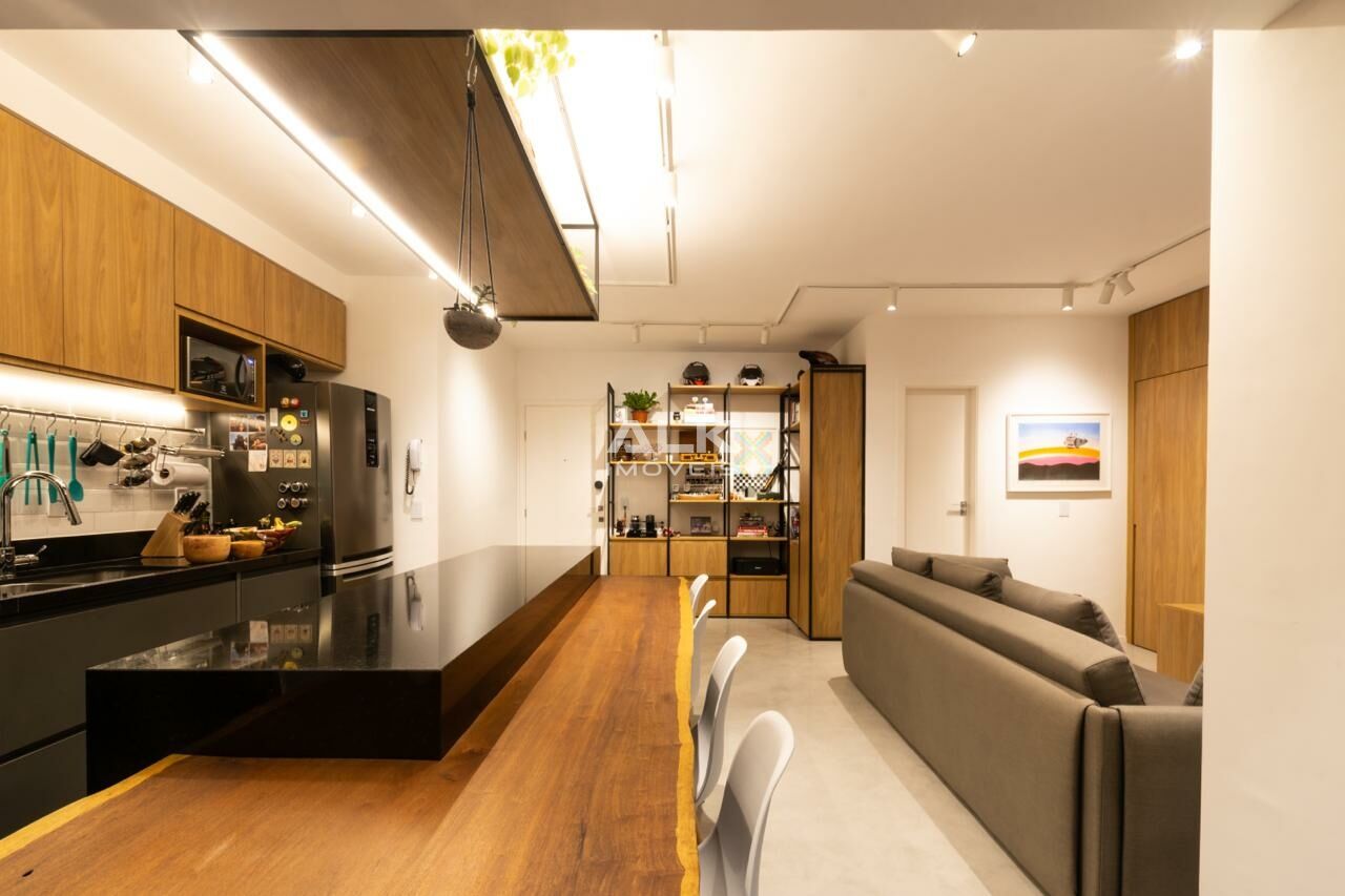 ste apartamento de 60m² no Alto de Pinheiros é totalmente reformado e conta com uma suíte, sala de jantar ampla com sacada e bar, além de um banheiro social. A porta de entrada é blindada, garantindo maior segurança. O imóvel será entregue com todos os eletrodomésticos, incluindo lava e seca, fogão, geladeira, micro-ondas, lava louça e ar-condicionado na suíte e na sala. Móveis como sofá cama com abertura elétrica, cadeiras e cama box também ficarão no apartamento, proporcionando praticidade e conforto. TV, som da sala e a infra do escritório serão retirados.