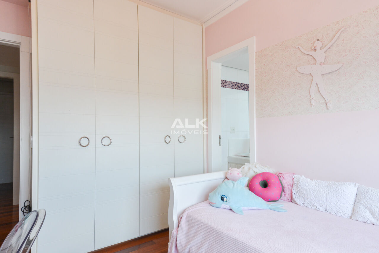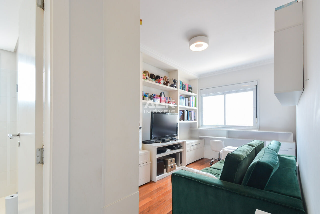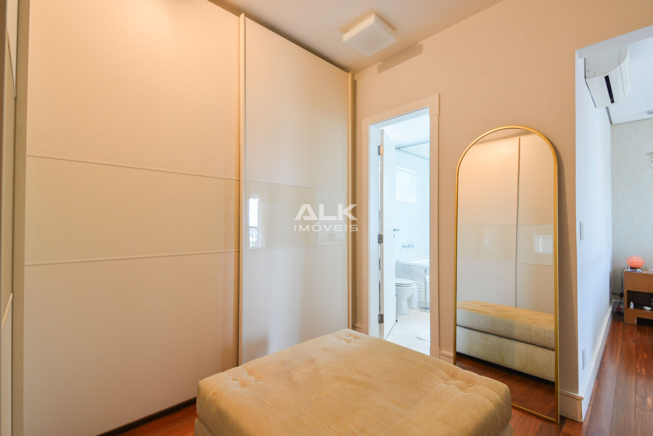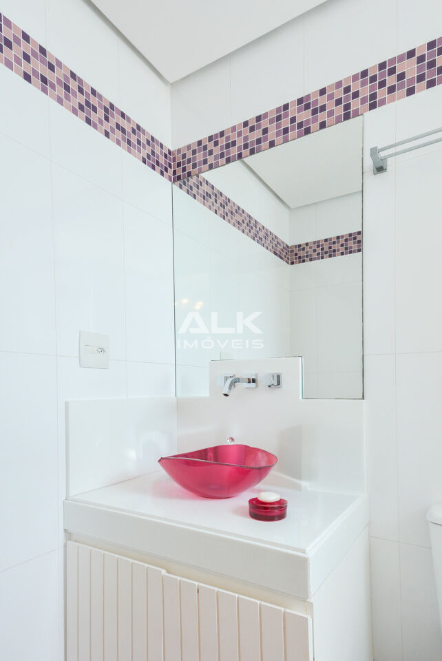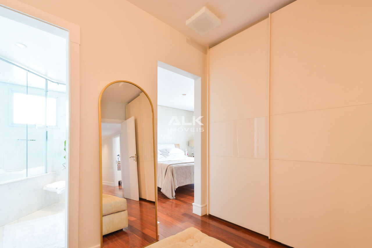5 banheiros no total, sendo 4 suítes e 1 lavabo, com acabamentos de alto padrão.