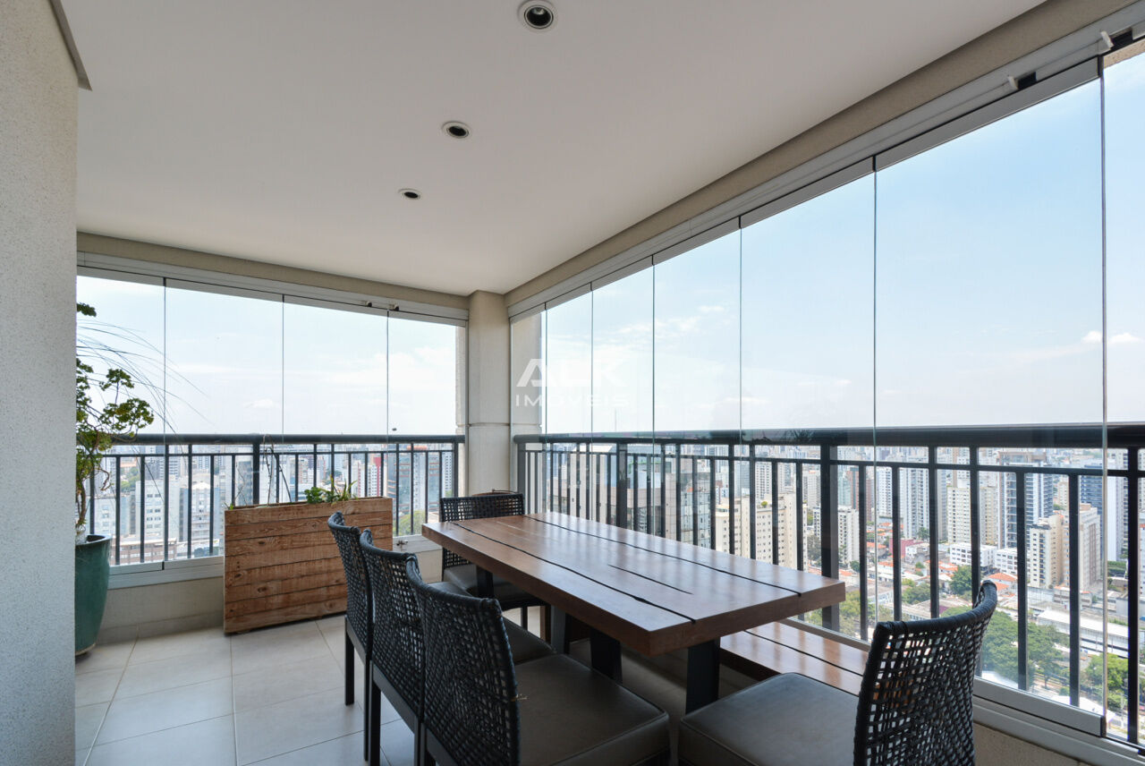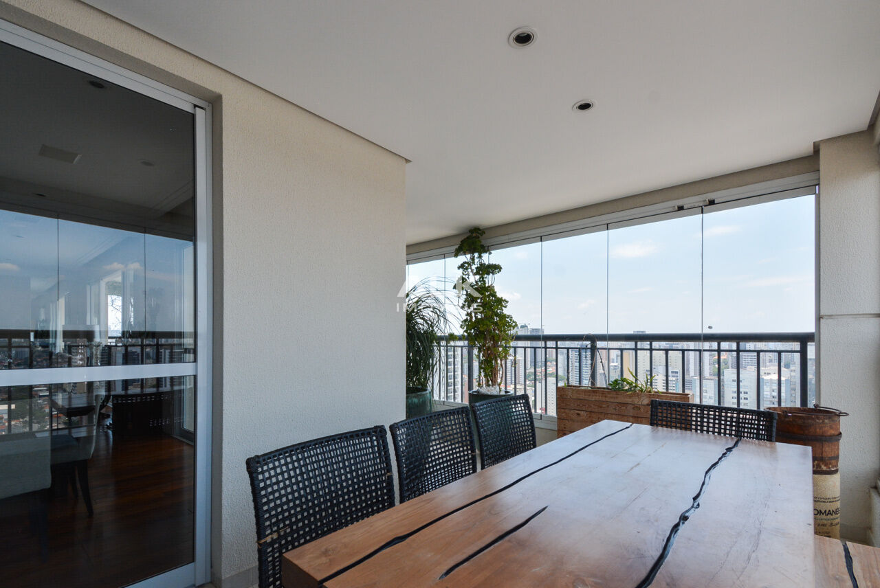 Varanda gourmet generosa, com área para copa e um ambiente perfeito para desfrutar de momentos únicos com vista privilegiada.