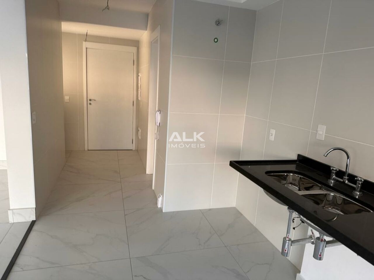 São 156m², 4 quartos, sendo 2 suítes, 3 salas, cozinha, lavabo, dependência de empregada, varanda gourmet com churrasqueira e 3 vagas de garagem.
