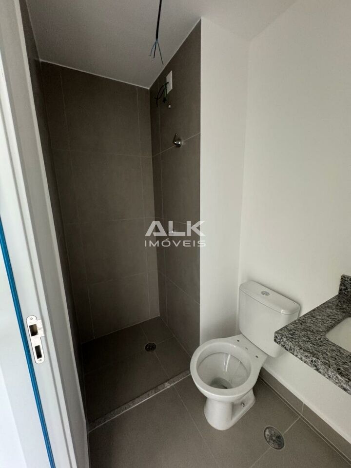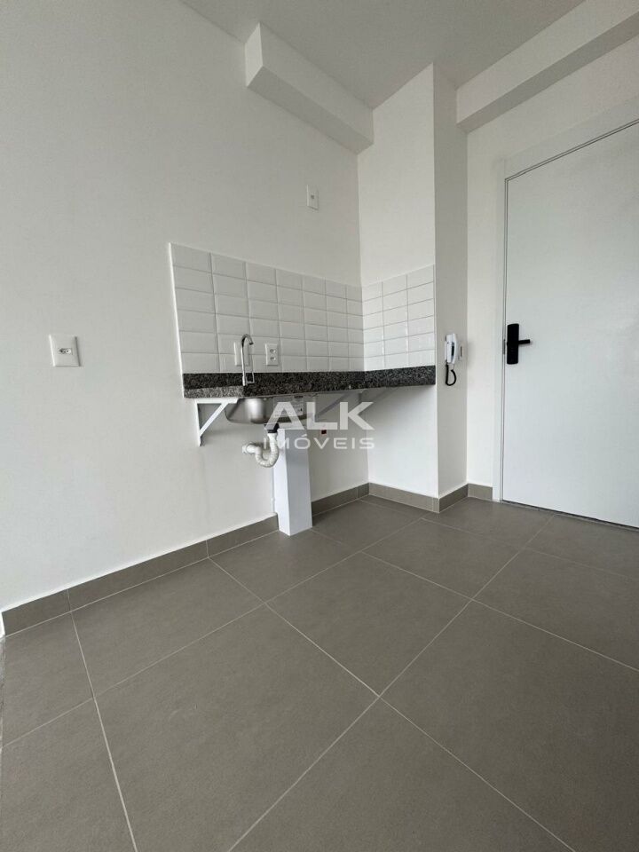 Studio em andar alto com 25m² entregue com excelente acabamento, cabendo uma cama queen size, com fechadura eletrônica, infra-estrutura para ar condicionado, tomada USB e portas com borracha amortecedora.