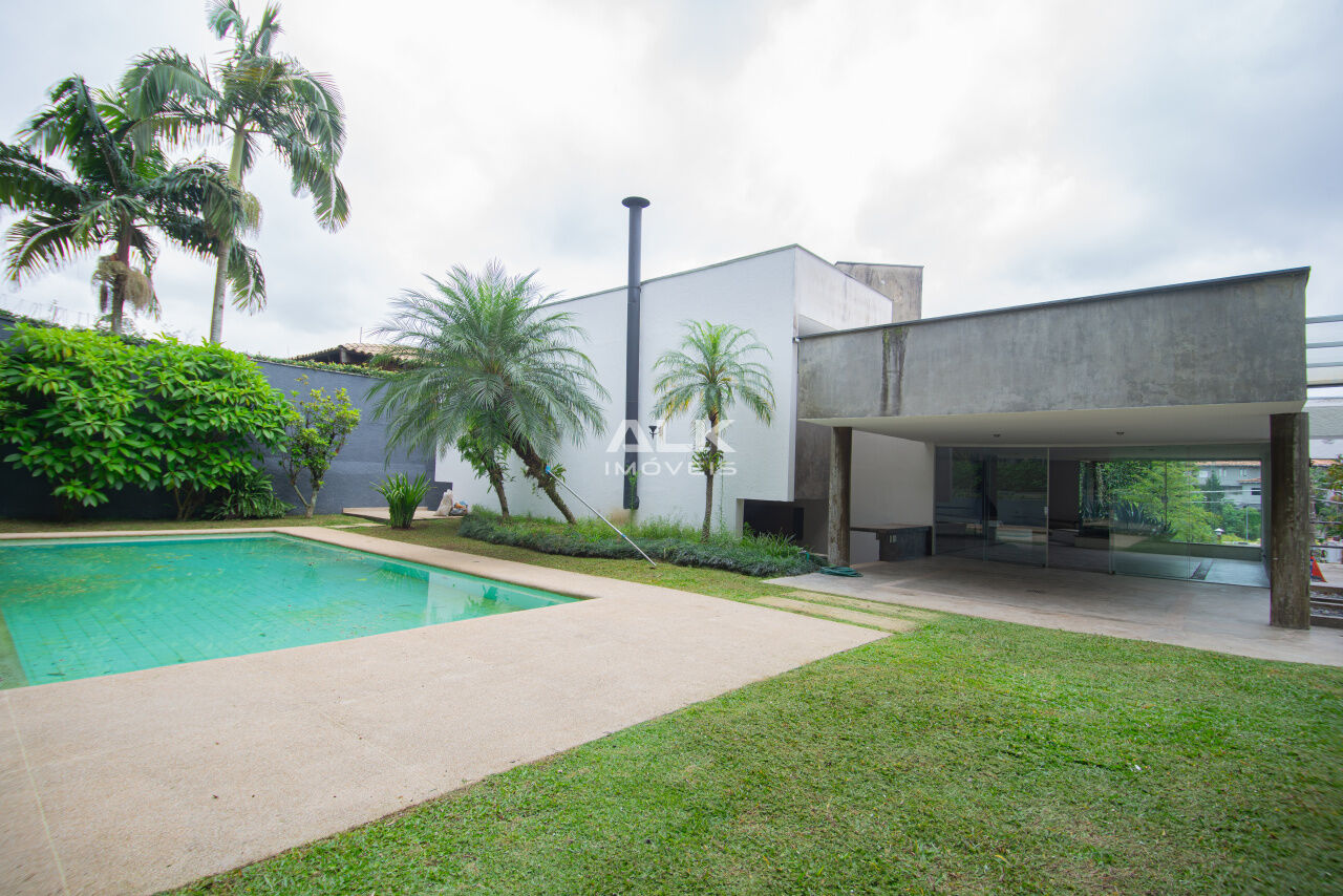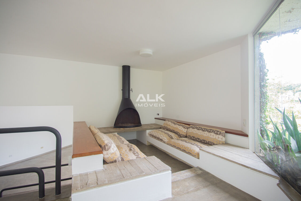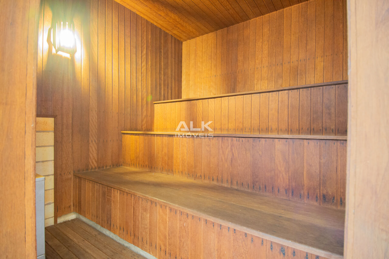- Segundo pavimento ? Área externa com jardim e piscina, Sala de estar com lareira, área de churrasqueira com sauna e banheiro anexos;