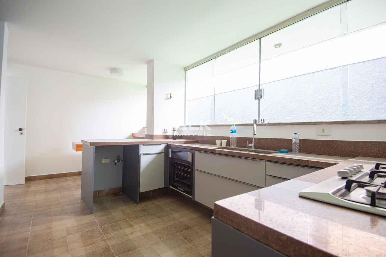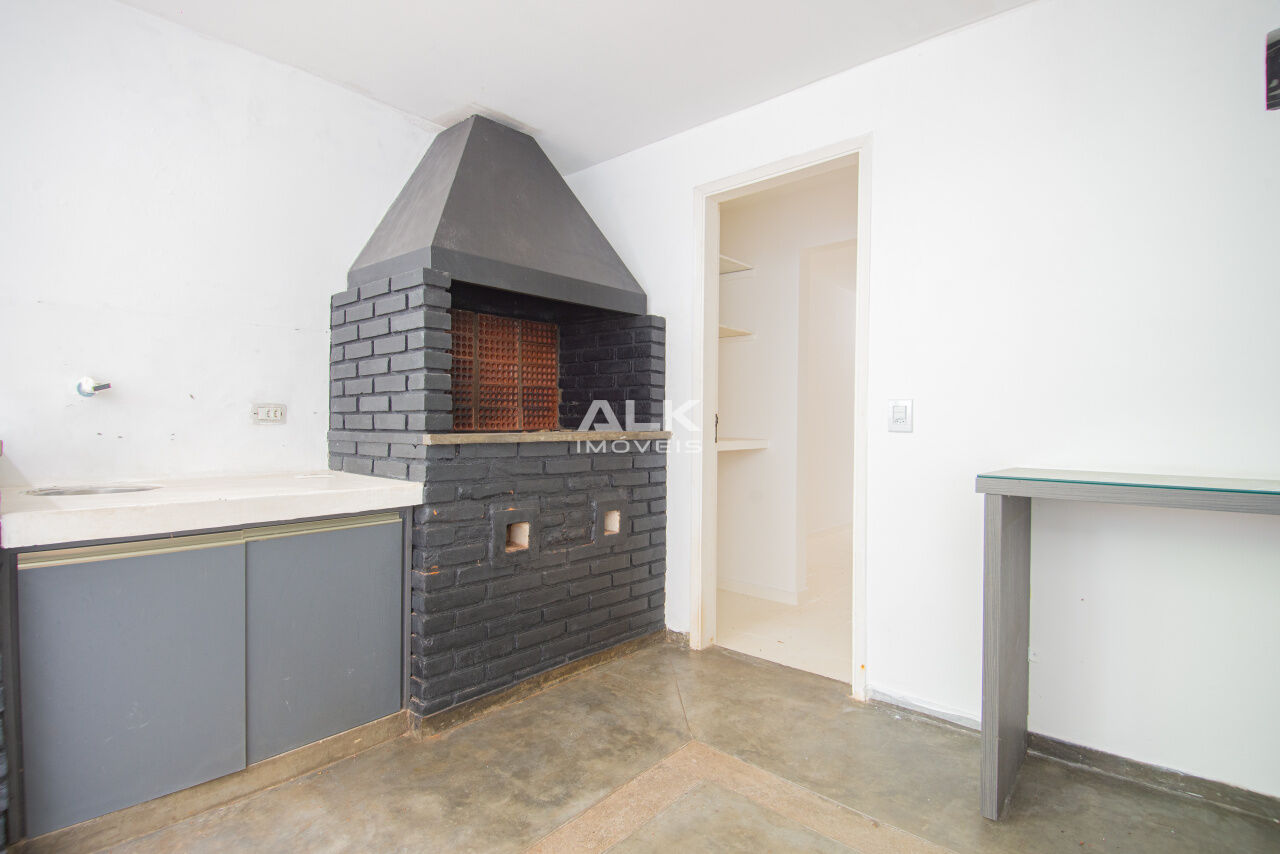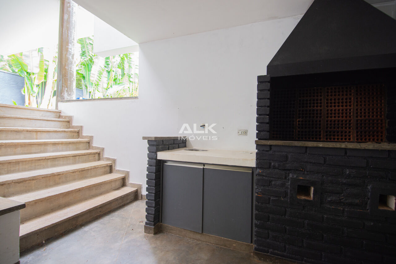 - Segundo pavimento ? Área externa com jardim e piscina, Sala de estar com lareira, área de churrasqueira com sauna e banheiro anexos;