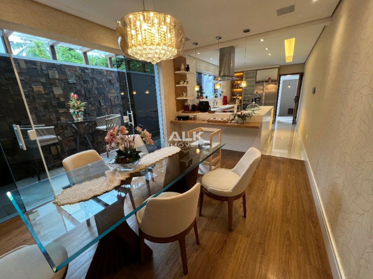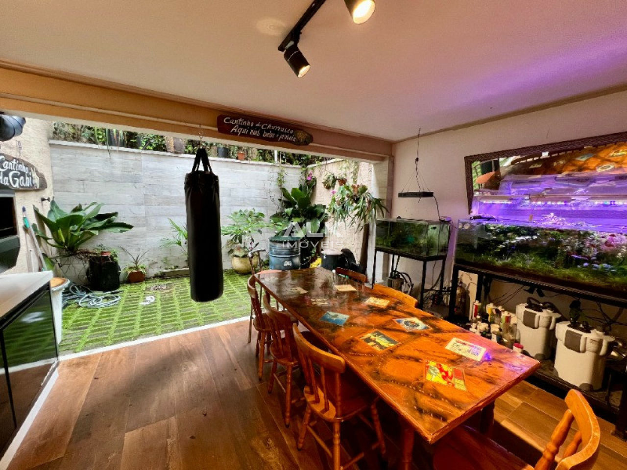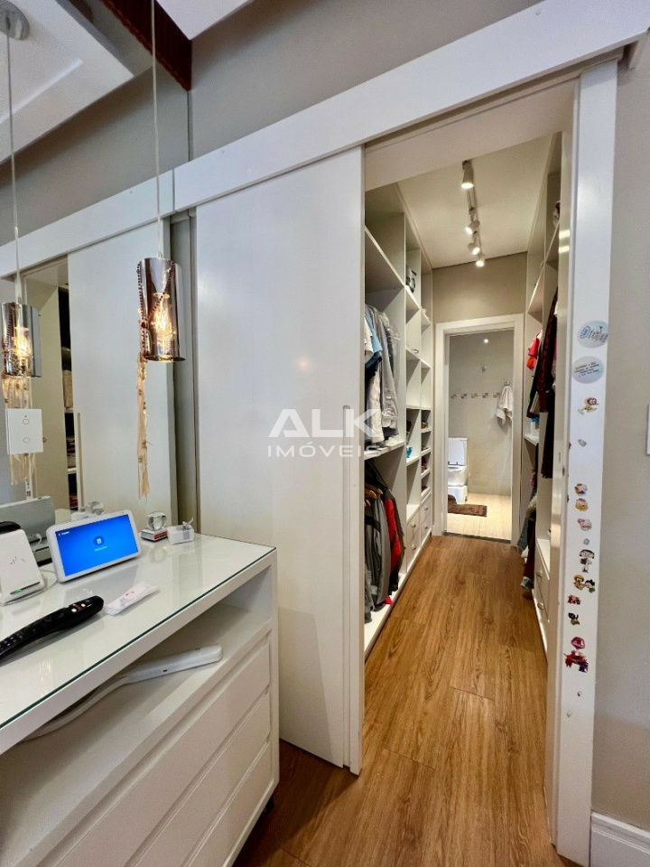 Possui sistema de câmera e sensores com alarme e monitoramento 24hs, cabeamento de internet nos 3 andares, aquecimento solar e boiler de 500 litros. No andar térreo temos garagem para 2 carros, a entrada para a sala por uma linda porta pivotante de madeira com fechadura eletrônica biométrica. O piso da área externa é porcelanato paredes acabamento em grafiato. A área interna é de piso vinílico clicado, com teto em gesso rebaixado e sistema de som na sala de estar e de jantar. Sala bem iluminada e parede com acabamento de tijolo exposto. Lavabo, sala de jantar integrada a cozinha, com porta de vidro para área externa. A cozinha com lindo acabamento traz um designe projetado para se integrar com a sala de jantar. Lavanderia com banheiro, escritório/quarto de brinquedos e um pequeno quintal completam a área térrea. Ao subir a escada que tem o corrimão de alumínio e vidro, uma parede de pedra e uma vista ampla pela janela de vidro trazem uma charme especial. Na parte superior são 3 dormitórios sendo uma suíte com uma bela varanda, A suíte tem persiana e sistema de iluminação automatizado, assim como o closet. Sua varanda tem um pergolado de dormentes e cruzetas coberto com vidro e deck de camuru e é visitado por sagüis, maritacas e outros pássaros. Seu closet versátil da acesso ao seu amplo banheiro que é dividido entre a área seca que tem uma pia de mármore e espelho em toda parede, e a área molhada com a ducha e banheira. Tijolinhos de vidro e nichos trazem claridade e praticidade. Pelo corredor vamos aos outros dois quartos e ao banheiro do andar superior, o piso é vinílico clicado e o teto é em gesso rebaixado. No piso inferior, além de duas salas versáteis que são usadas uma como estúdio de musica e outra como academia, há uma área com mesa de sinuca e churrasqueira, espaço ideal para curtir momentos especiais.