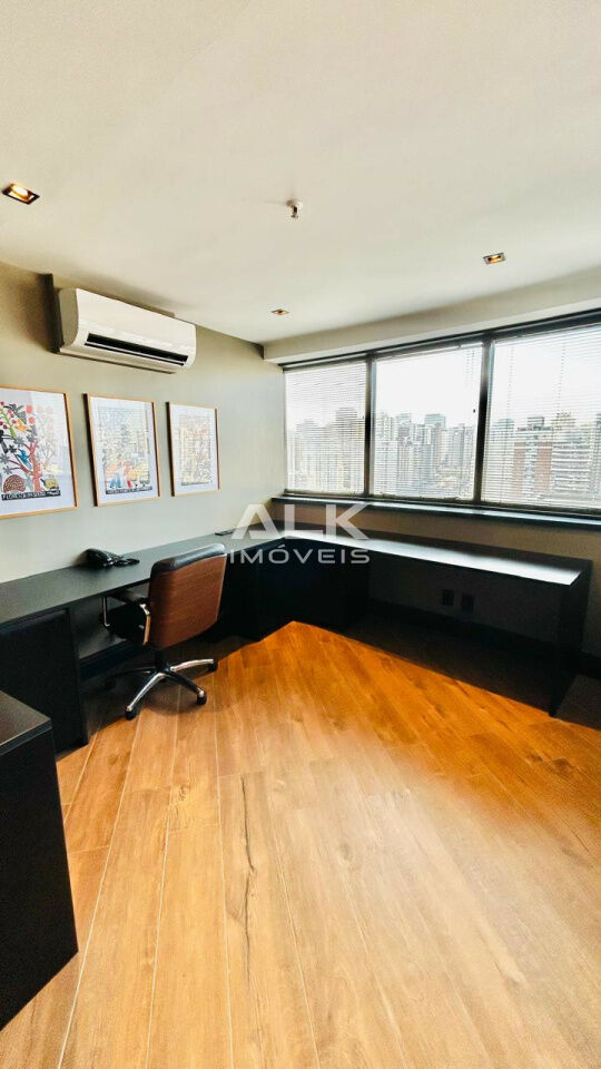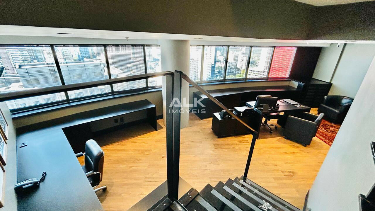 Conjunto Comercial Duplex na região nobre de Pinheiros, Alto Padrão, na cobertuta ? 18º andar, vista livre do high line de São Paulo, com 86 m², contendo: 4 estações de trabalho + sala de reunião + 2 banheiros + copa/cozinha + circuito interno com câmeras + infraestrutura de telefonia e internet + duas vagas de garagem + ar-condicionado. Totalmente mobiliado com materiais nobres: banheiros Portobello e metais Deca, portas sob medida Pormade, piso Portobello, móveis sob medida Artfutura, ar-condicionado LG em todos os ambientes, granito preto Via Láctea. Em prédio com toda infraestrutura e segurança, que conta com 5 elevadores inteligentes + estacionamento rotativo com manobristas + bicicletário + portaria com identificação por biometria + segurança monitorada. No melhor ponto do Bairro de Pinheiros, próximo aos melhores restaurantes, próximo a bancos, farmácias, comércio em geral e de fácil acesso.