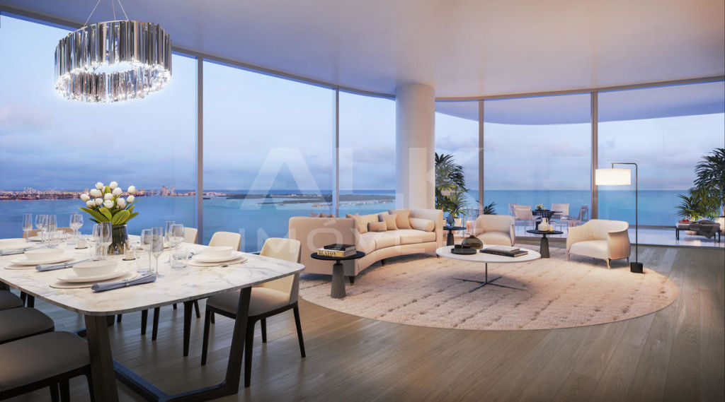 A partir do momento em que o elevador abre suas portas para os apartamentos, os moradores são agraciados com uma deslumbrante vista para a baía de Biscayne. Os quartos e áreas de convívio estão posicionados com vista direta para a água, permitindo que os moradores tenham sempre o mar em seu horizonte, sem nem precisar sair de casa, de seus novos apartamentos em Brickell. Janelas do chão ao teto dão as boas-vindas à luz do dia dentro de cada espaço aberto, enquanto as grandes varandas integram-se cuidadosamente às grandes salas e quartos. Portas de correr criam uma conexão aberta com os espaços de convívio principais e fluem perfeitamente com o ambiente, levando aos moradores vistas extraordinárias em todos os momentos. O resultado é uma transição contínua entre o exterior e o interior, com a presença constante da água. Dentro dos apartamentos, as impressionantes paredes de janelas de vidro trazem um equilíbrio ao toque acolhedor dos materiais naturais. Cada acabamento e superfície foram inspirados pelo interior de iates, trazendo elegância e conforto aos cômodos, celebrando os prazeres da vida na baía.