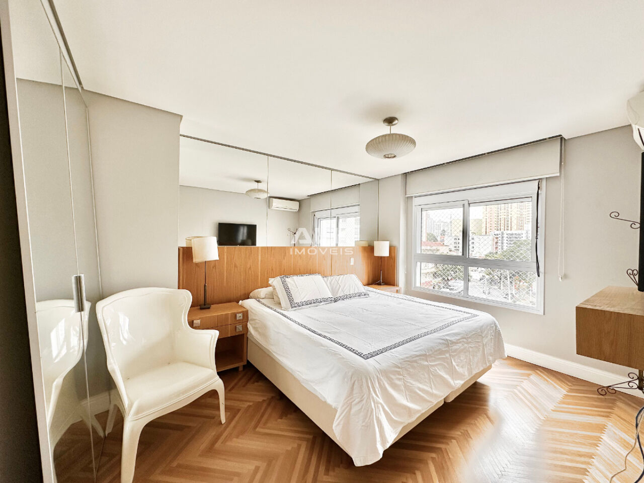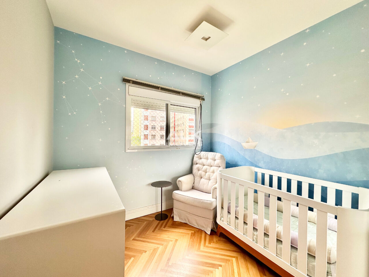 Com 171 m² muito bem distribuídos, o imóvel oferece 3 suítes amplas, todas com banheiros com ventilação natural e armários embutidos de alta qualidade, garantindo praticidade e elegância. O piso de madeira nobre em espinha de peixe imprime personalidade e um toque clássico ao ambiente.