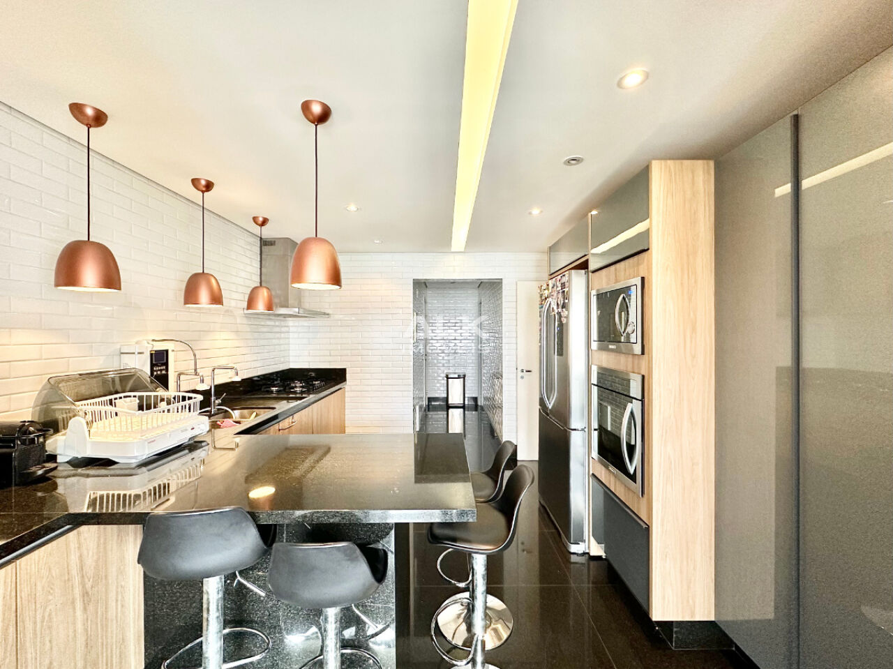 O apartamento dispõe ainda de ampla área de serviço, bem ventilada e iluminada, além de quarto e banheiro de serviço. Um lavabo chiquérrimo atende às visitas com elegância. Completam o imóvel depósito privativo e 3 vagas de garagem.