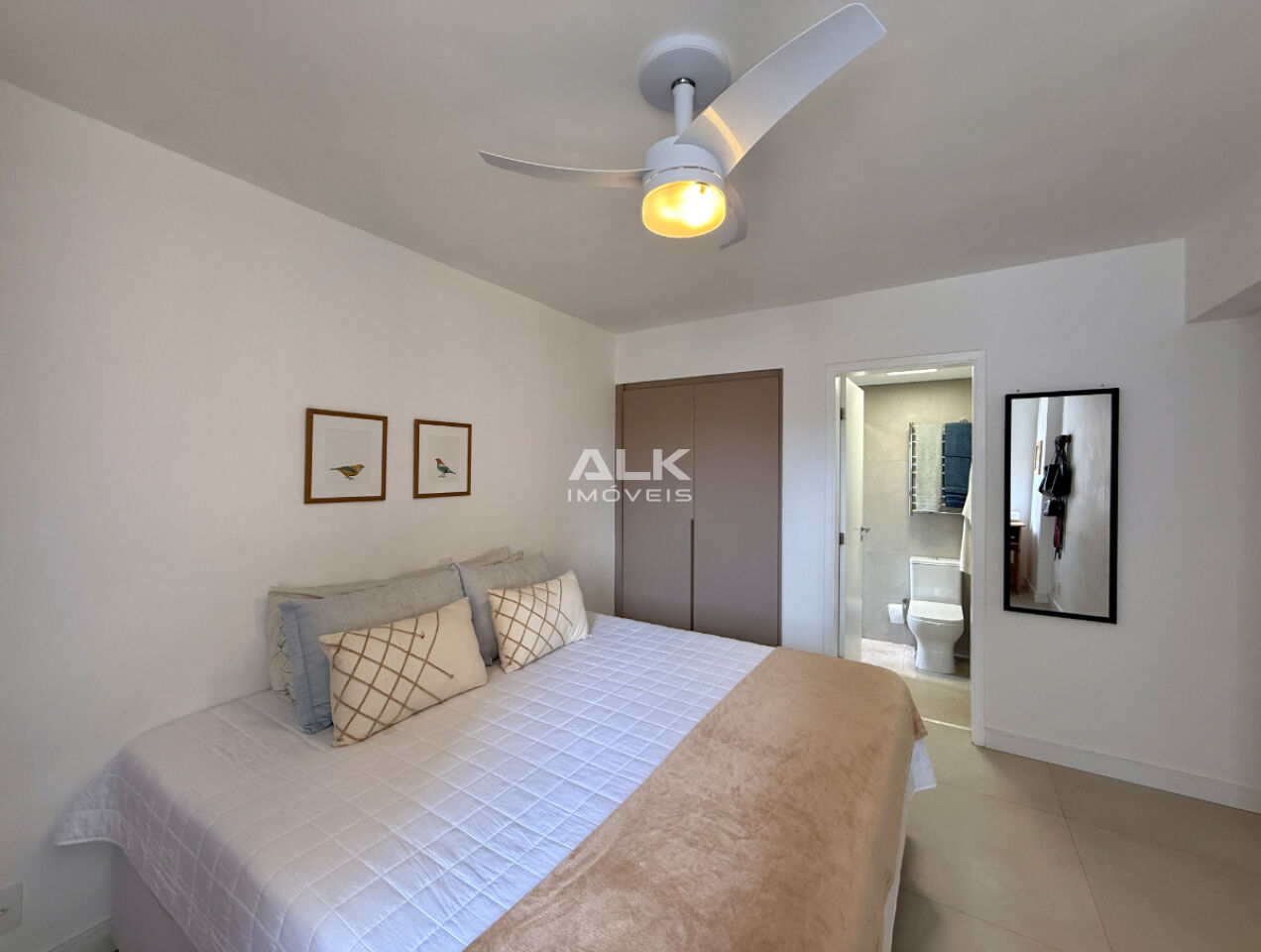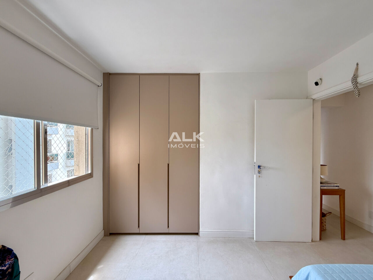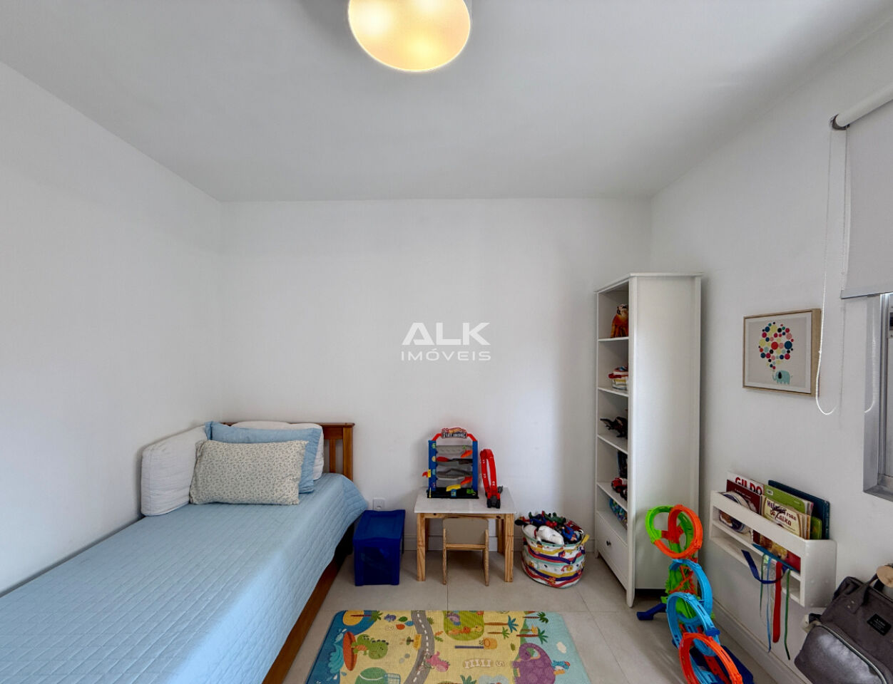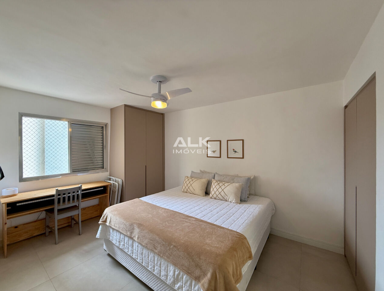 O apartamento conta com uma cozinha integrada, área de serviço e um banheiro de serviço, além de móveis planejados que otimizam o espaço. O piso em porcelanato traz modernidade e facilita a manutenção.