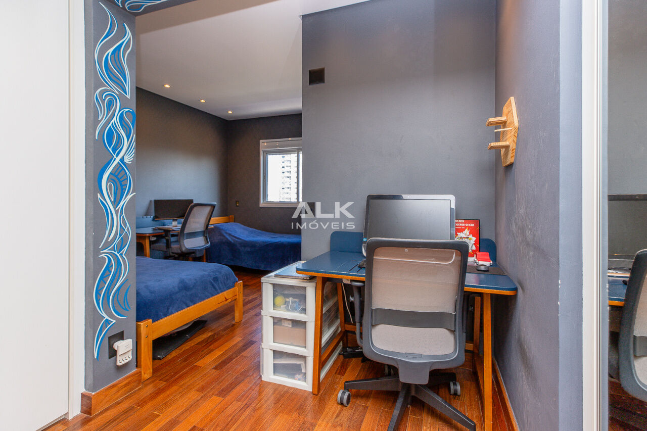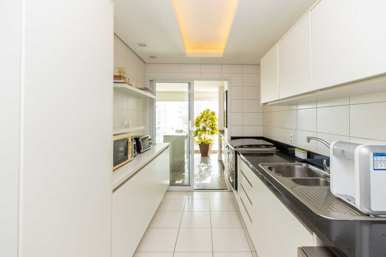 Apartamento em andar alto, com sala ampla, varanda gourmet, 2 suítes, lavabo, cozinha e área de serviço bem espaçosas, com quarto e banheiro de empregada.