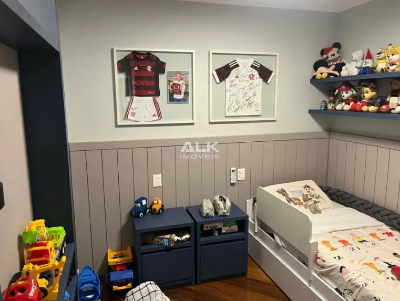 Apartamento com 3 suítes, 5 banheiros, 3 vagas de garagem.