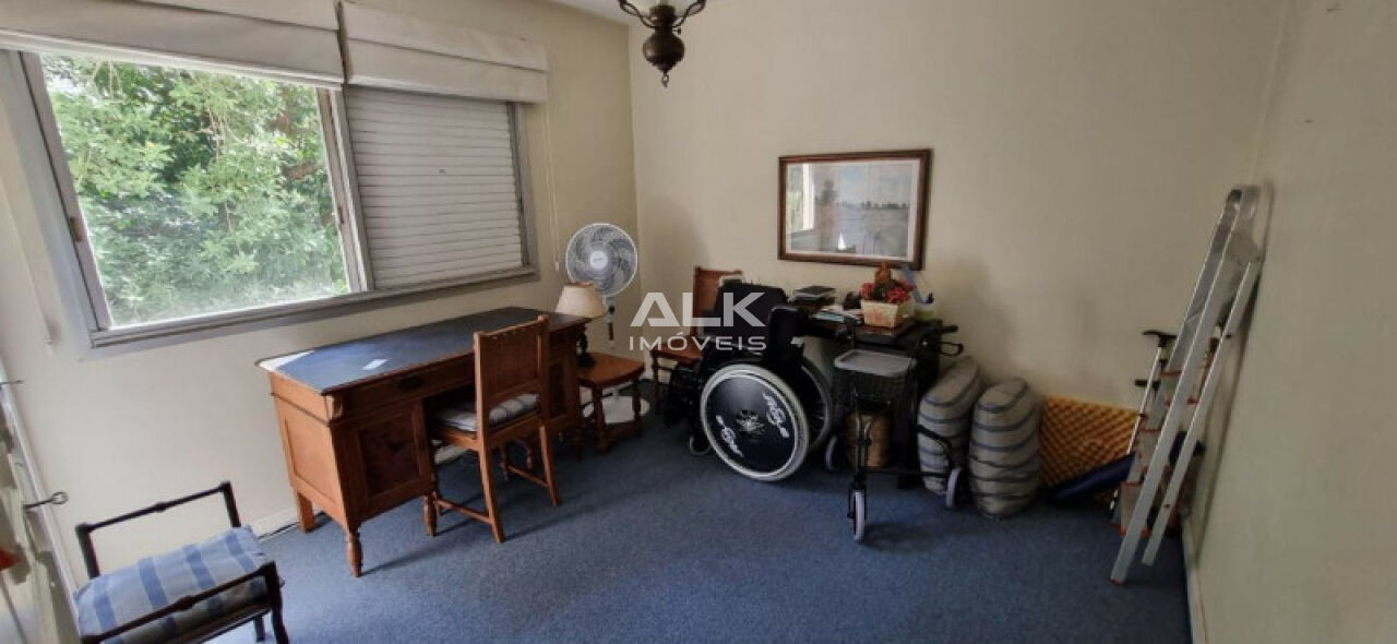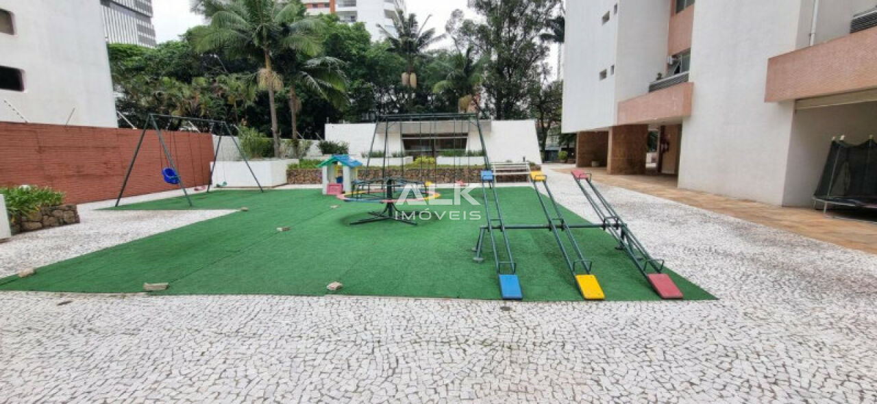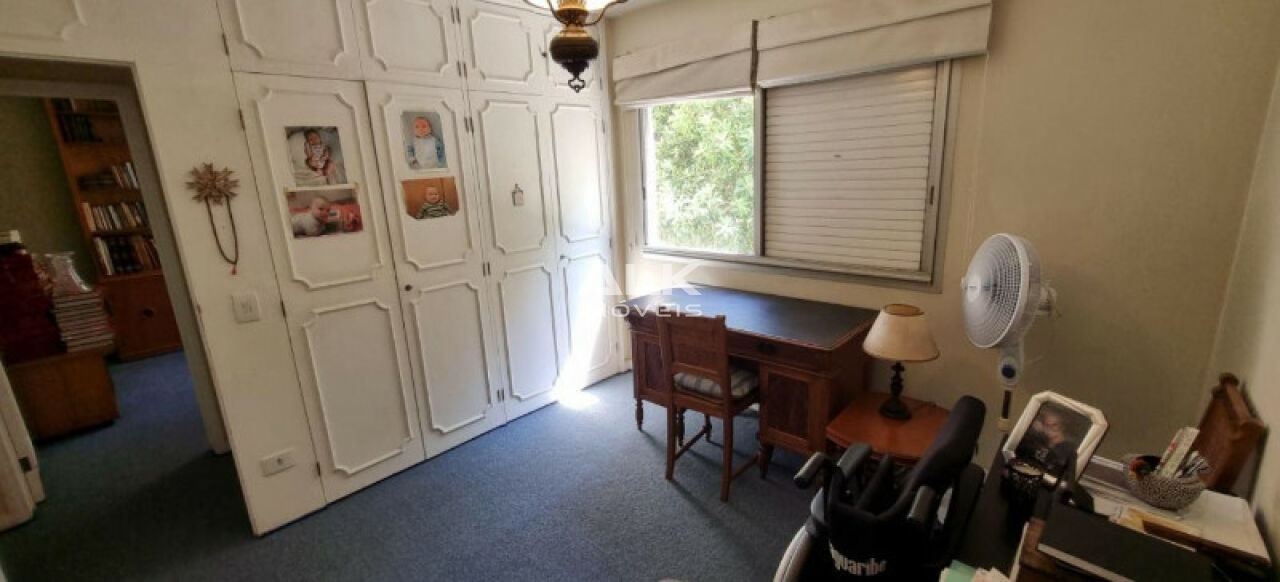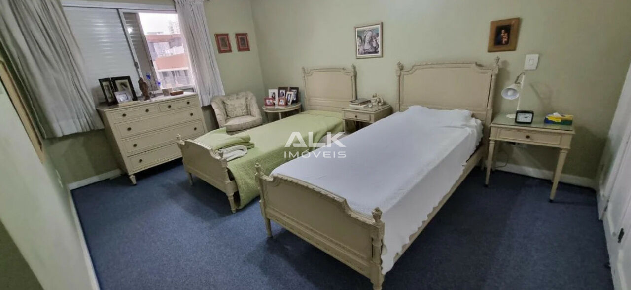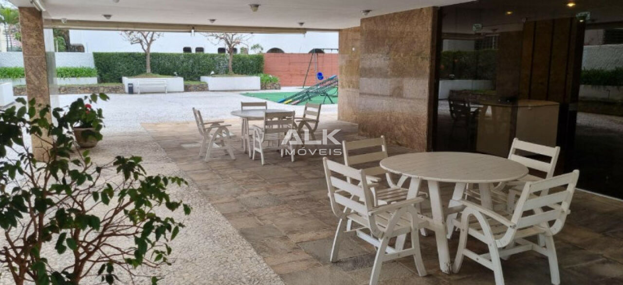 Apartamento antigo em excelente estado de conservação. O apartamento fica no 4º andar de frente para uma rua calma e arborizada. São 4 dormitórios sendo uma suíte grande e um dos quartos transformado em sala de TV, mas que pode ser revertido em quarto. Os quartos possuem armários embutidos em madeira maciça. Ampla sala para 3 ambientes com piso de tábua corrida. Copa e cozinha amplos e com armários. Área de serviço com janelas de ponta a ponta, o que confere luminosidade e ventilação a vontade. Dependência de empregada com armários e banheiro privativo. Ampla área comum possuindo espaço para caminhada, piscina, quadra de esportes, playground, academia e salão de festas. São duas vagas na garagem para veículos grandes (pick-up) com vasta área de manobra. O condomínio conta com poço artesiano regularizado, o que reduz a conta de água. Condomínio calmo e tranquilo onde os funcionários são antigos e conhecem todos os moradores pelo nome, o que dá muita segurança.