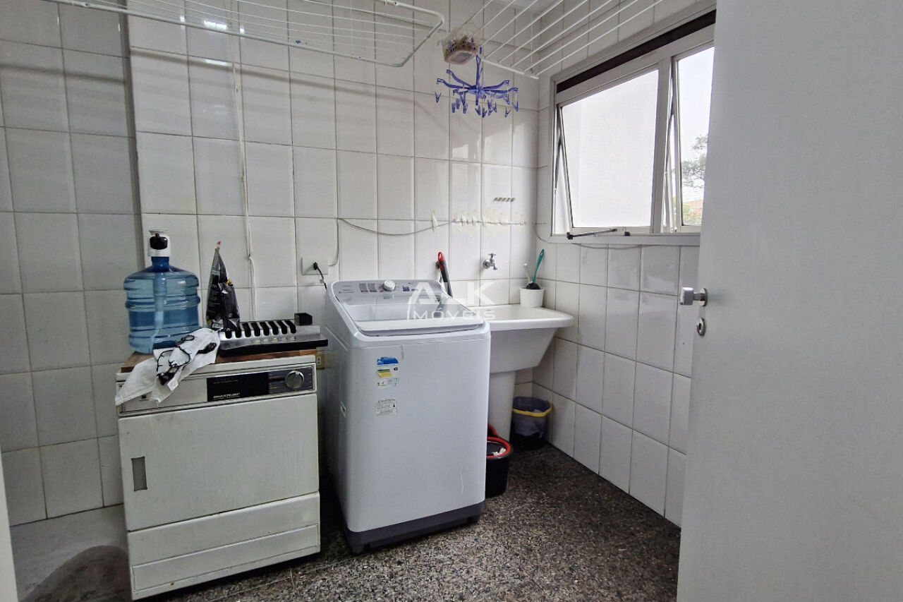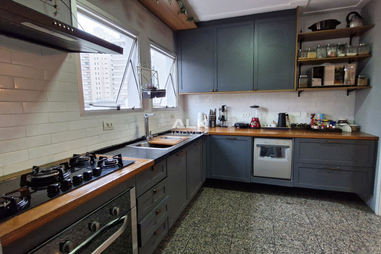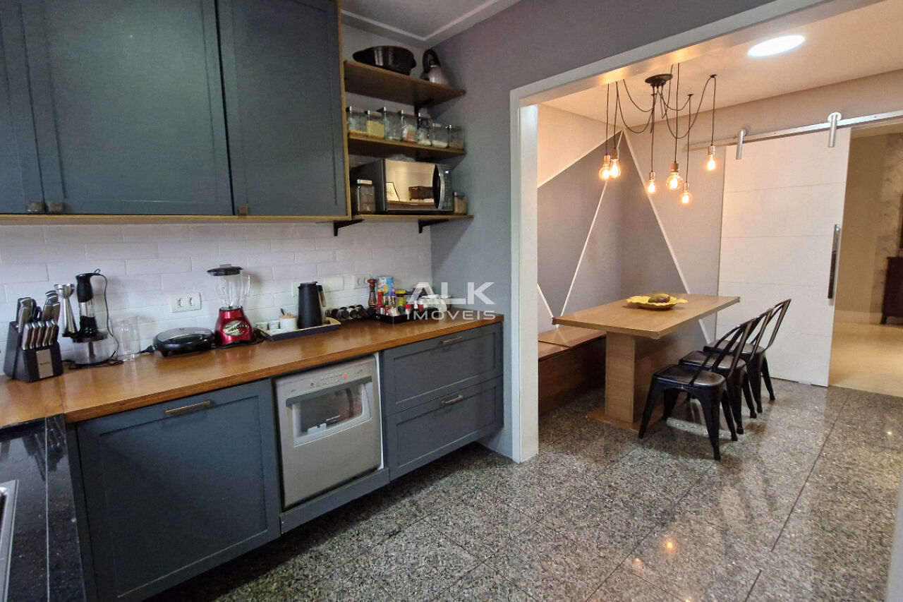 Cozinha bem dimensionada e integrada a copa, área de serviço e dependência de empregados.