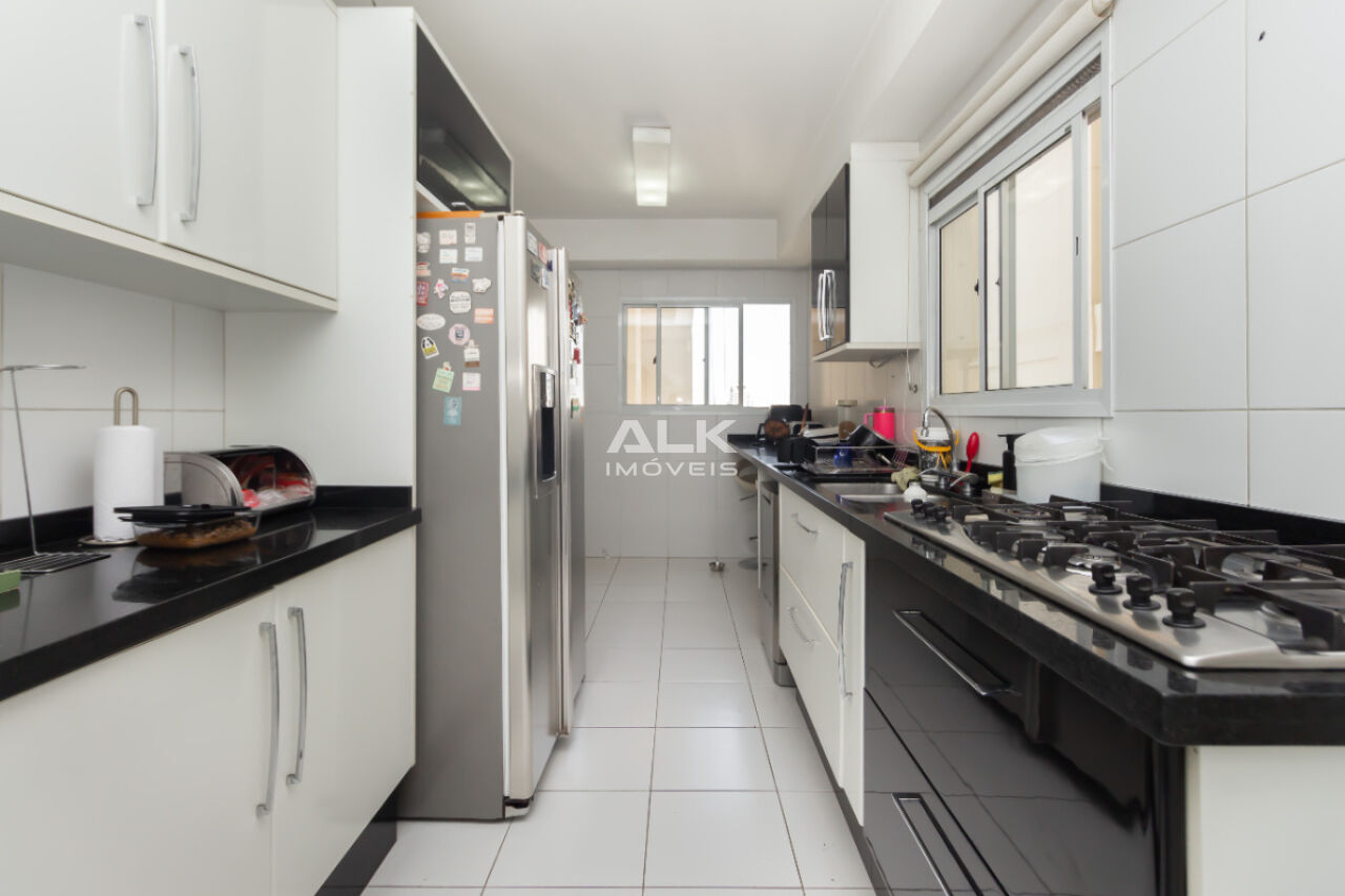 A cozinha foi projetada para quem gosta de praticidade e beleza. Com armários planejados, bancadas generosas e acabamentos de excelente qualidade, o espaço une elegância e funcionalidade. A área de serviço é ventilada, e o imóvel conta ainda com dependência de apoio, ideal para quem busca mais comodidade.