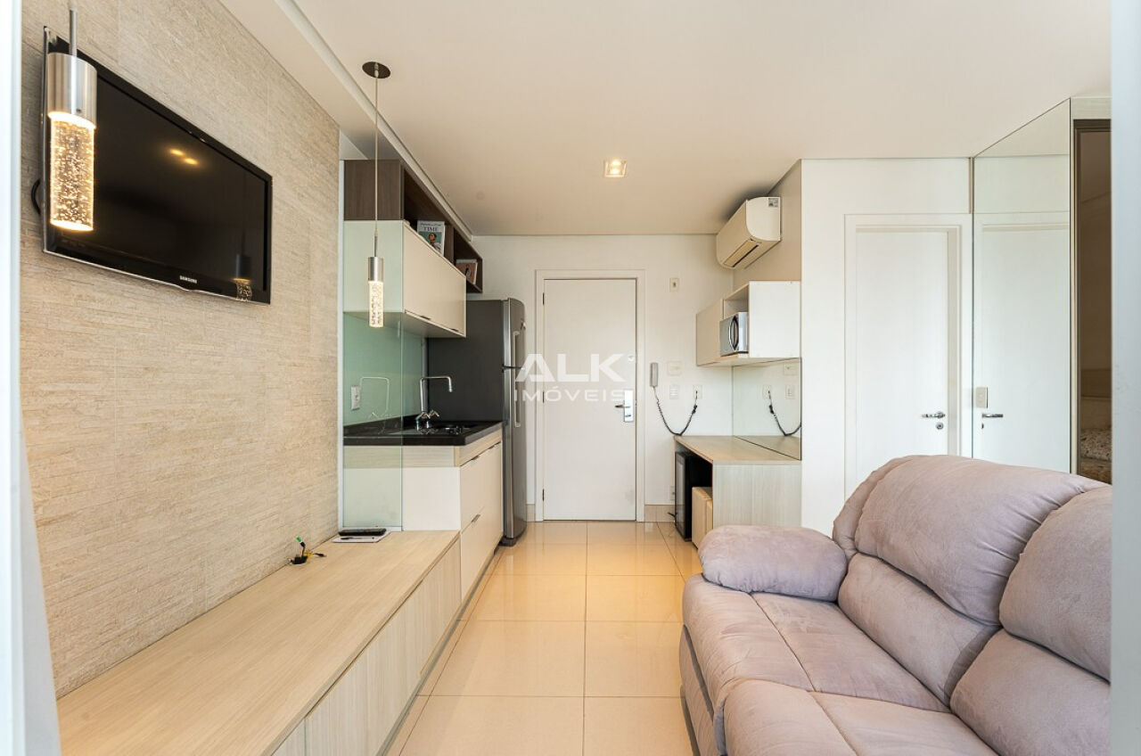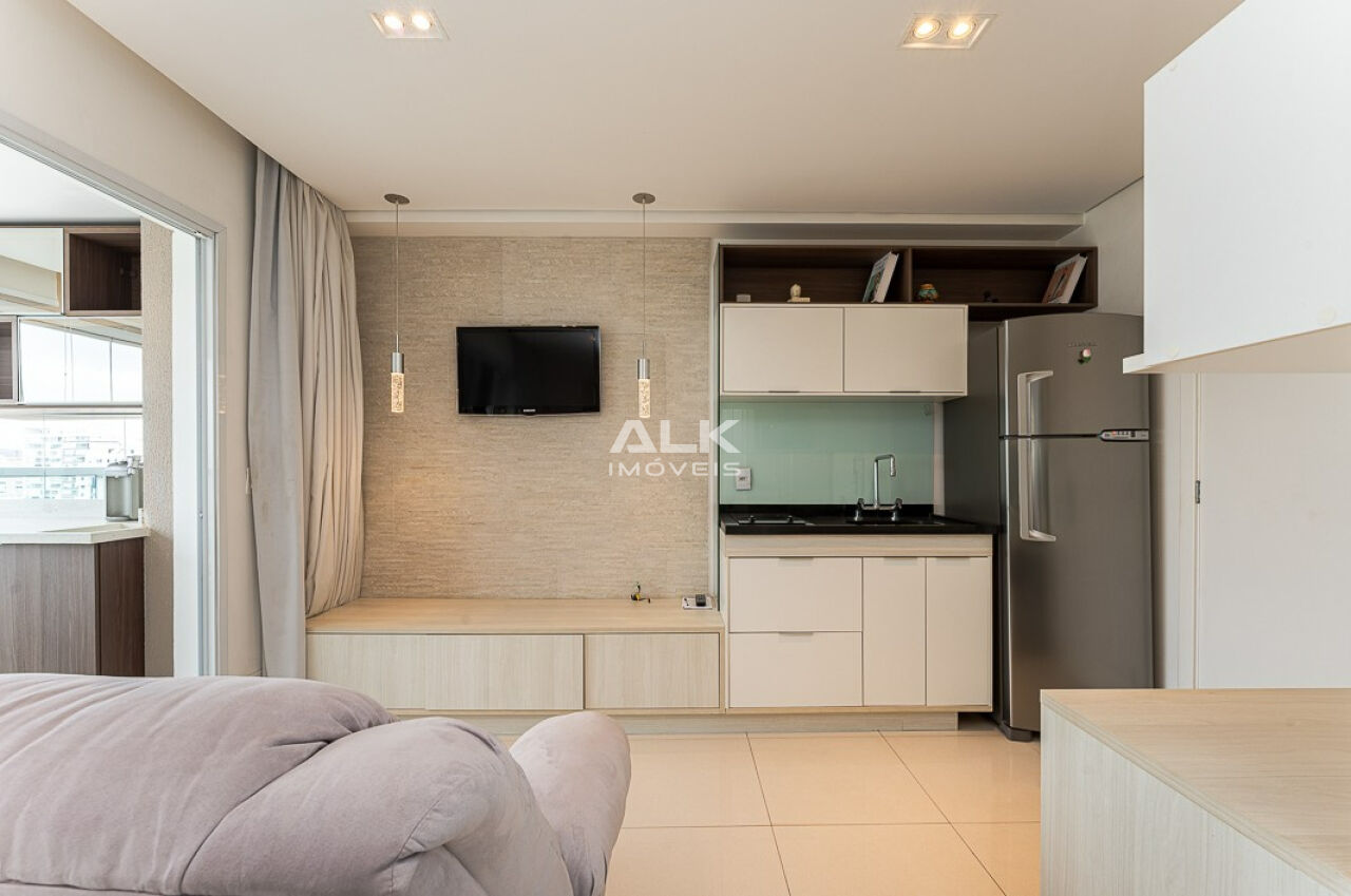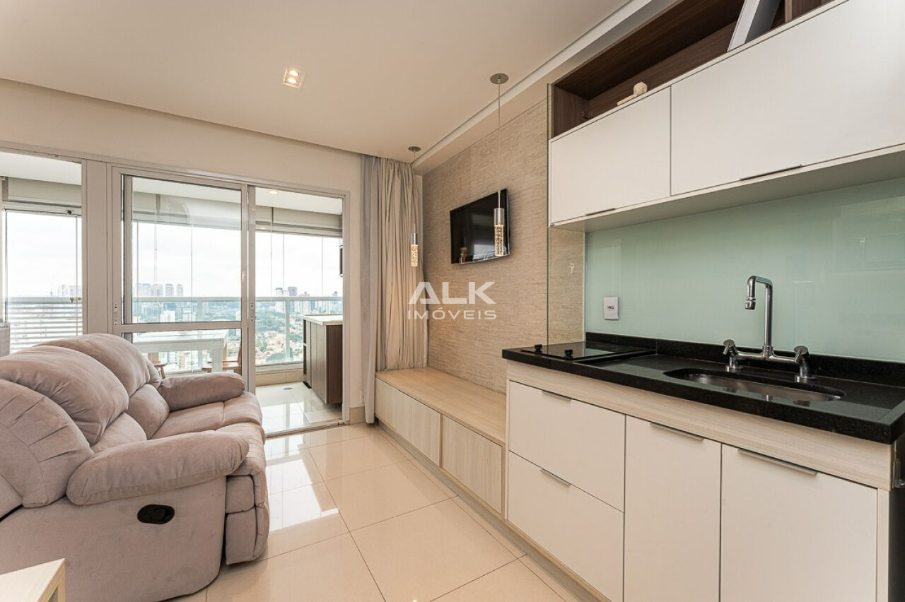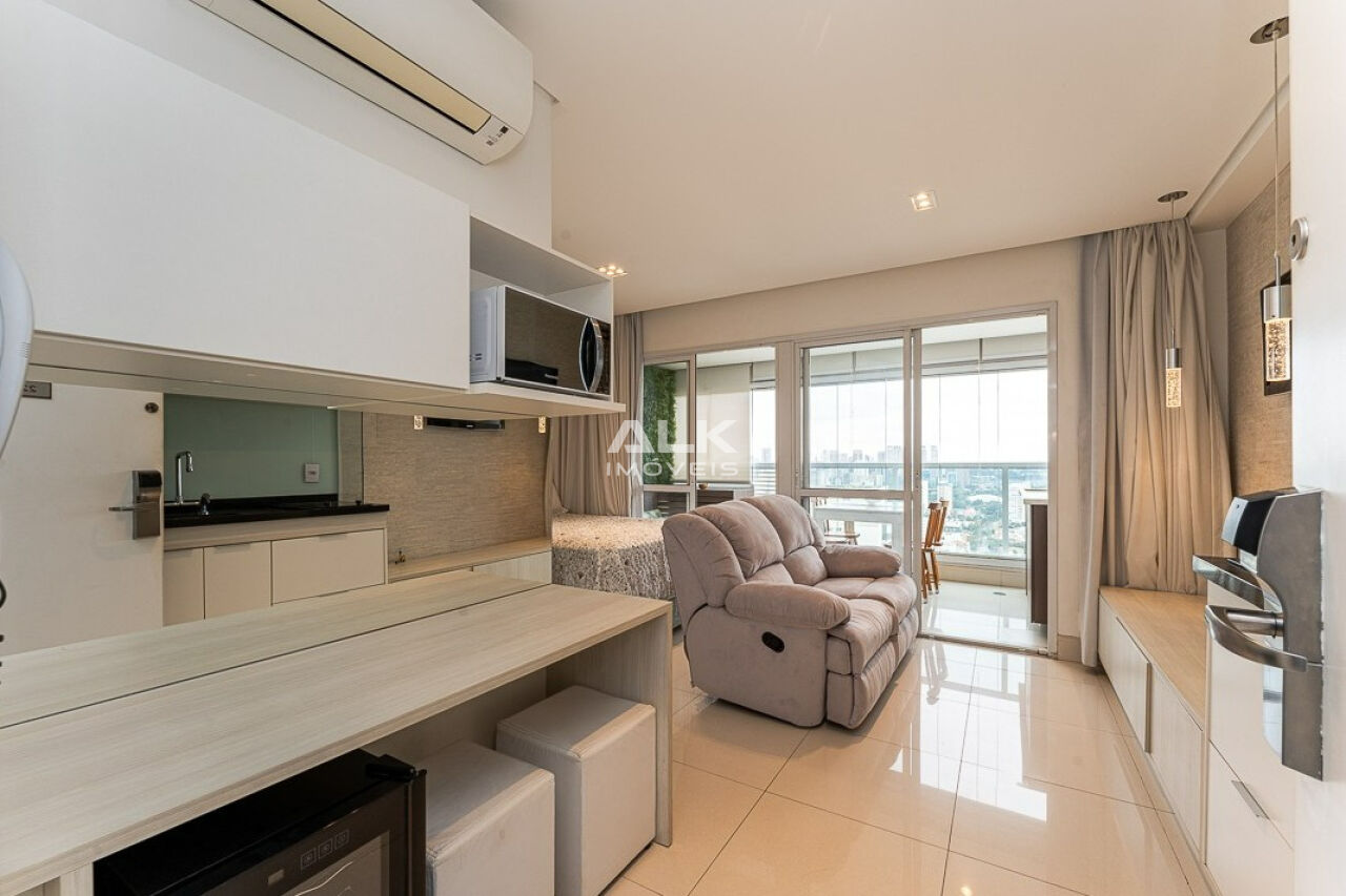 Studio impecável de 33m² com 1 vaga, mobiliado e com lazer de clube no Campo Belo
