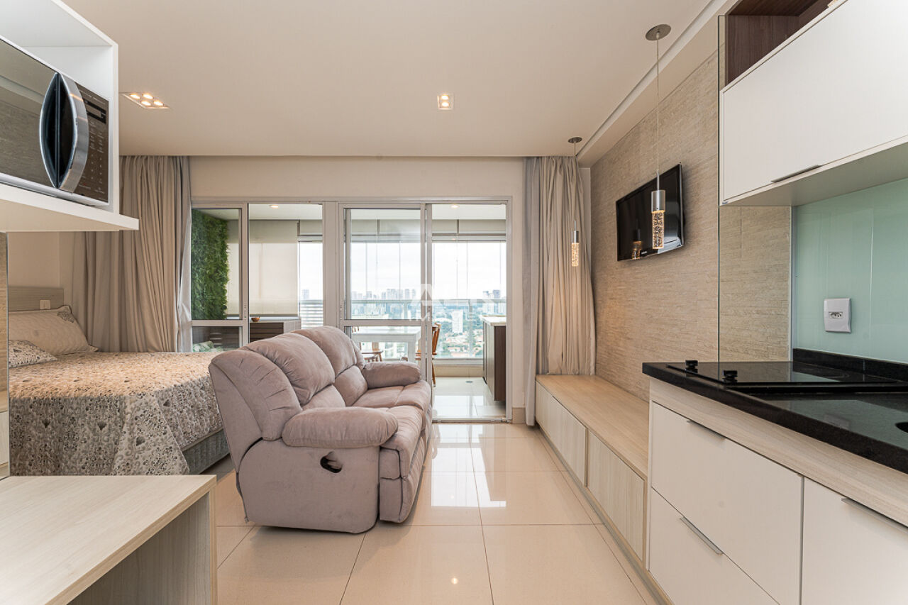 Localizado no 22º andar do Condomínio Cosmopolitan High Garden, na Avenida Santo Amaro, este studio de 33m² com 1 vaga de garagem é a união perfeita entre conforto, praticidade e sofisticação. Completamente mobiliado, o espaço é ideal tanto para morar quanto para investir. O ambiente interno, com móveis planejados e eletrodomésticos, é moderno e acolhedor. A varanda, um verdadeiro diferencial, é envidraçada e perfeita para quem valoriza um espaço multiuso muito bem aproveitado. A vista é deslumbrante até nós dias mais cinzentos. Imagine só o pôr do sol!