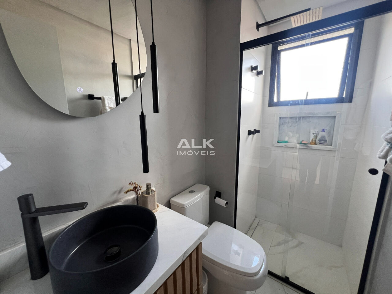 Banheiro no corredor que atende também como lavabo;