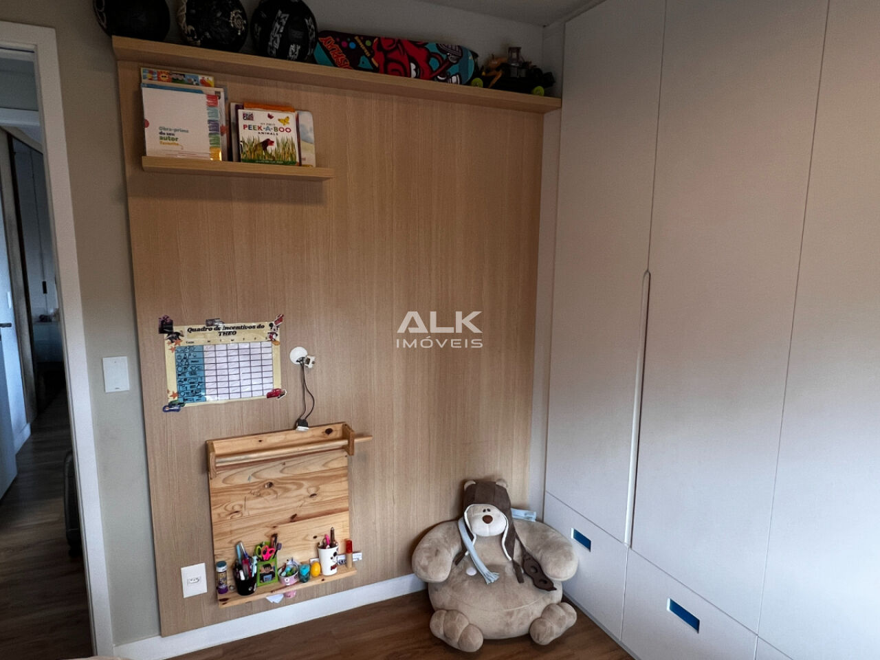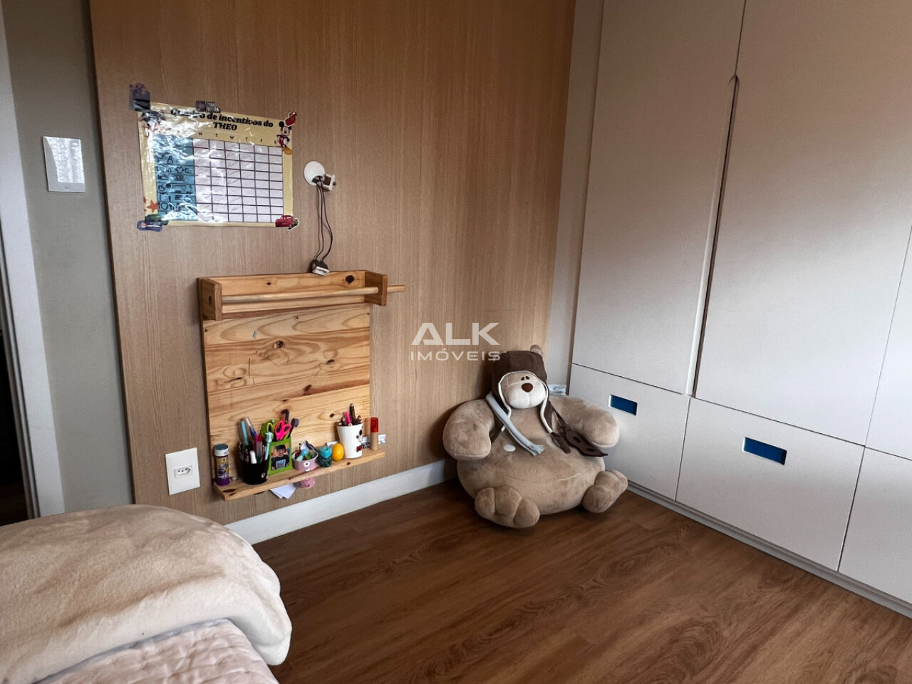 Quarto 2 com armários planejados e bancada escritório