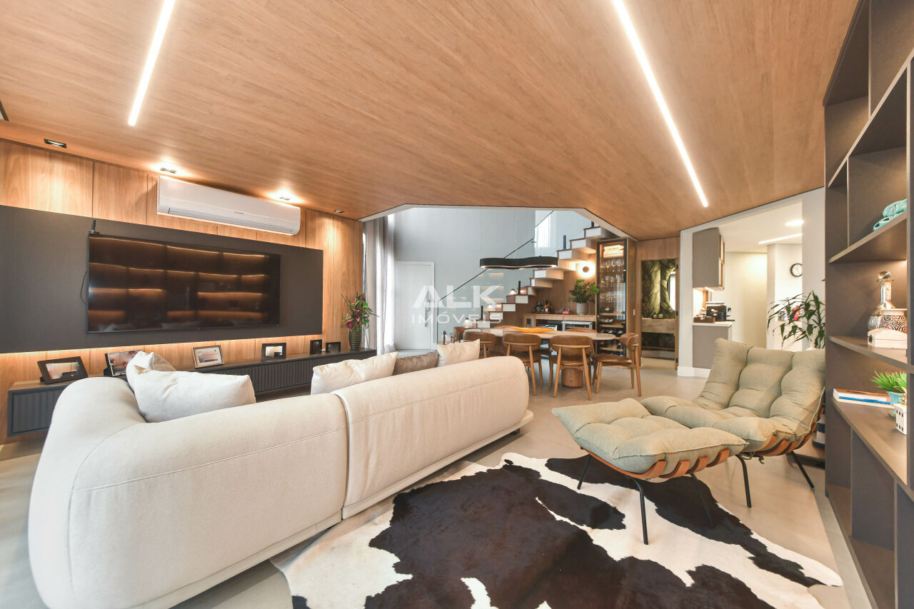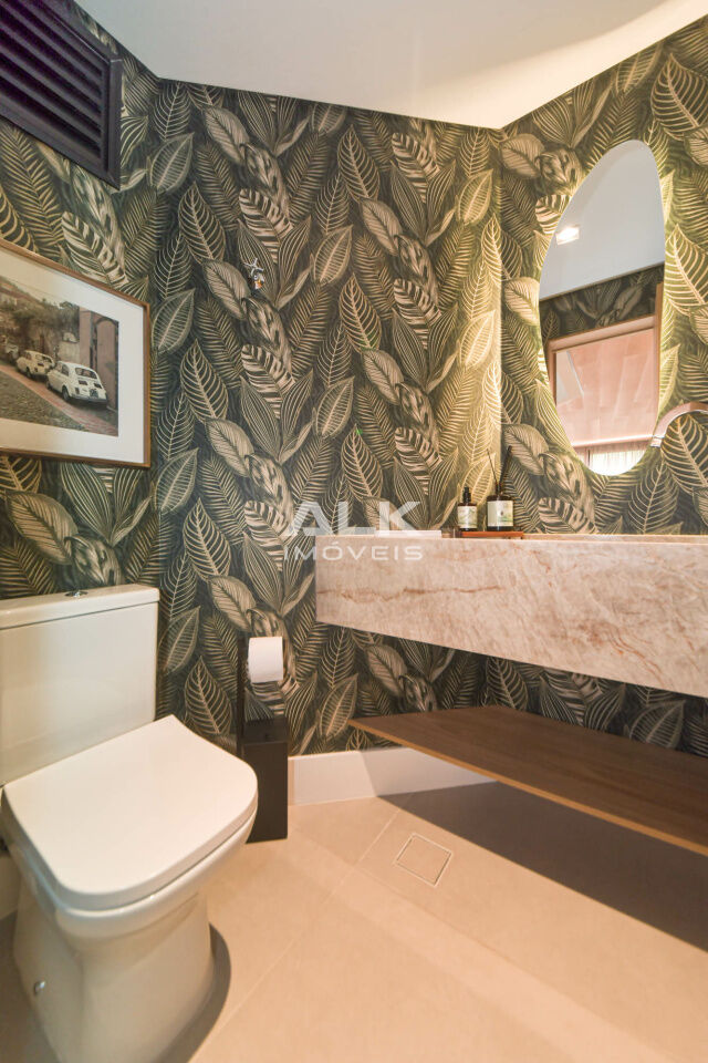 Ampla sala com 3 ambientes e lavabo. Conta também com móvel de adega (para 30 garrafas), cristaleira , e espaço para adega climatizada e cervejeira.