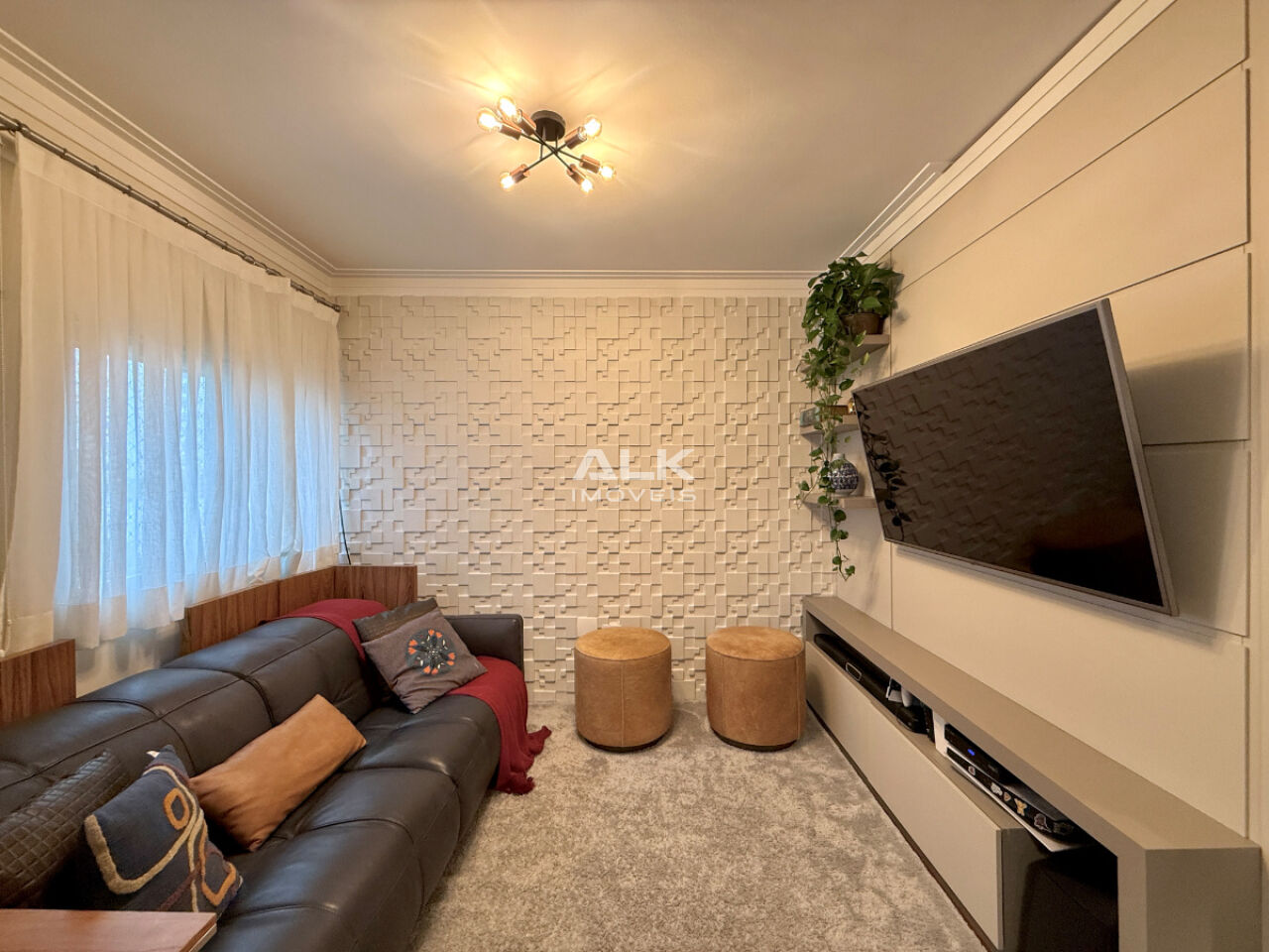 Um dos dormitórios transformado em aconchegante sala de TV (facilmente reversível)