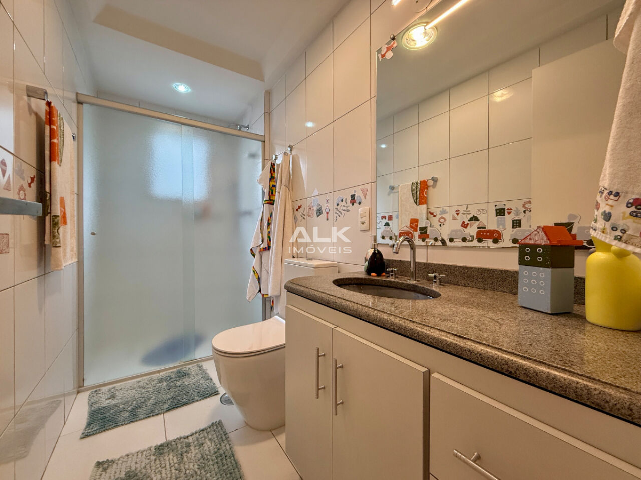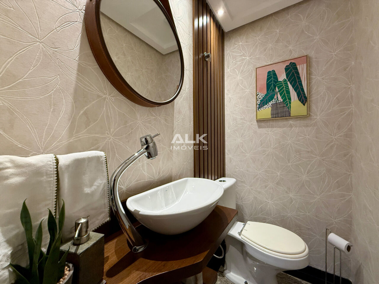 Ao todo, o imóvel dispõe de 5 banheiros (incluindo lavabo e banheiro de serviço).