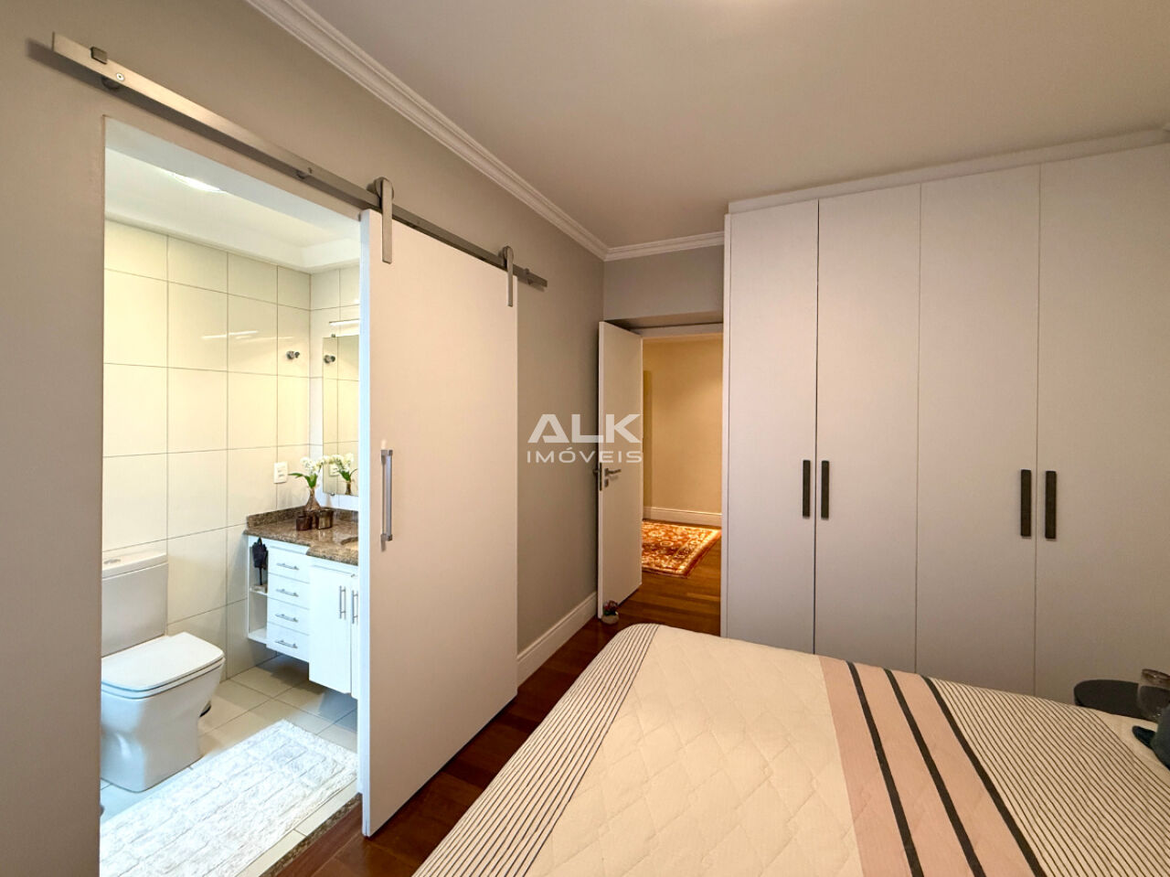 Com 155 m² de área útil, a planta foi inteligentemente adaptada para oferecer ainda mais conforto e integração. Originalmente com 4 dormitórios, atualmente conta com 3 suítes espaçosas, sendo: