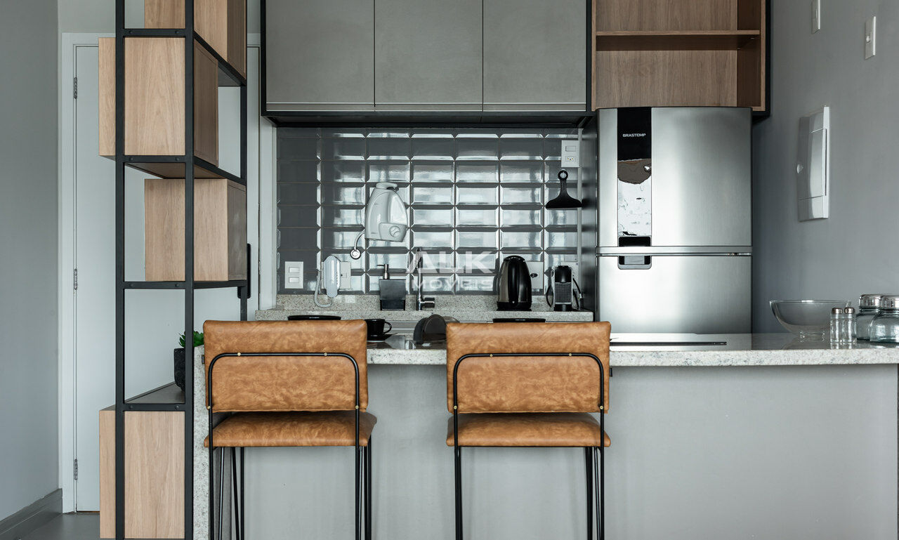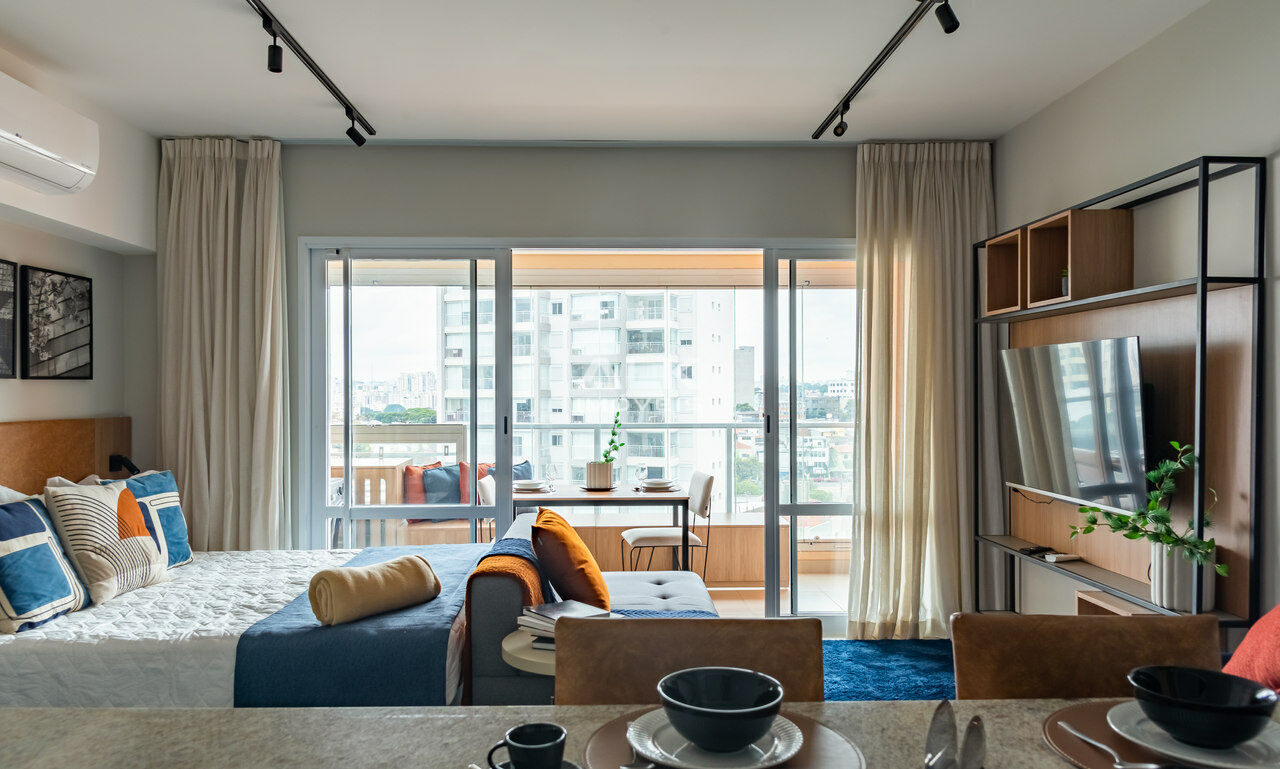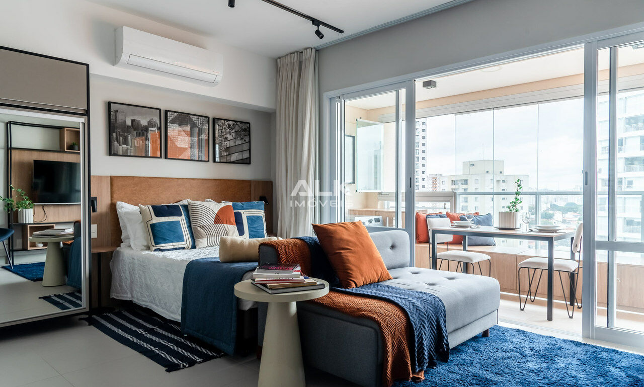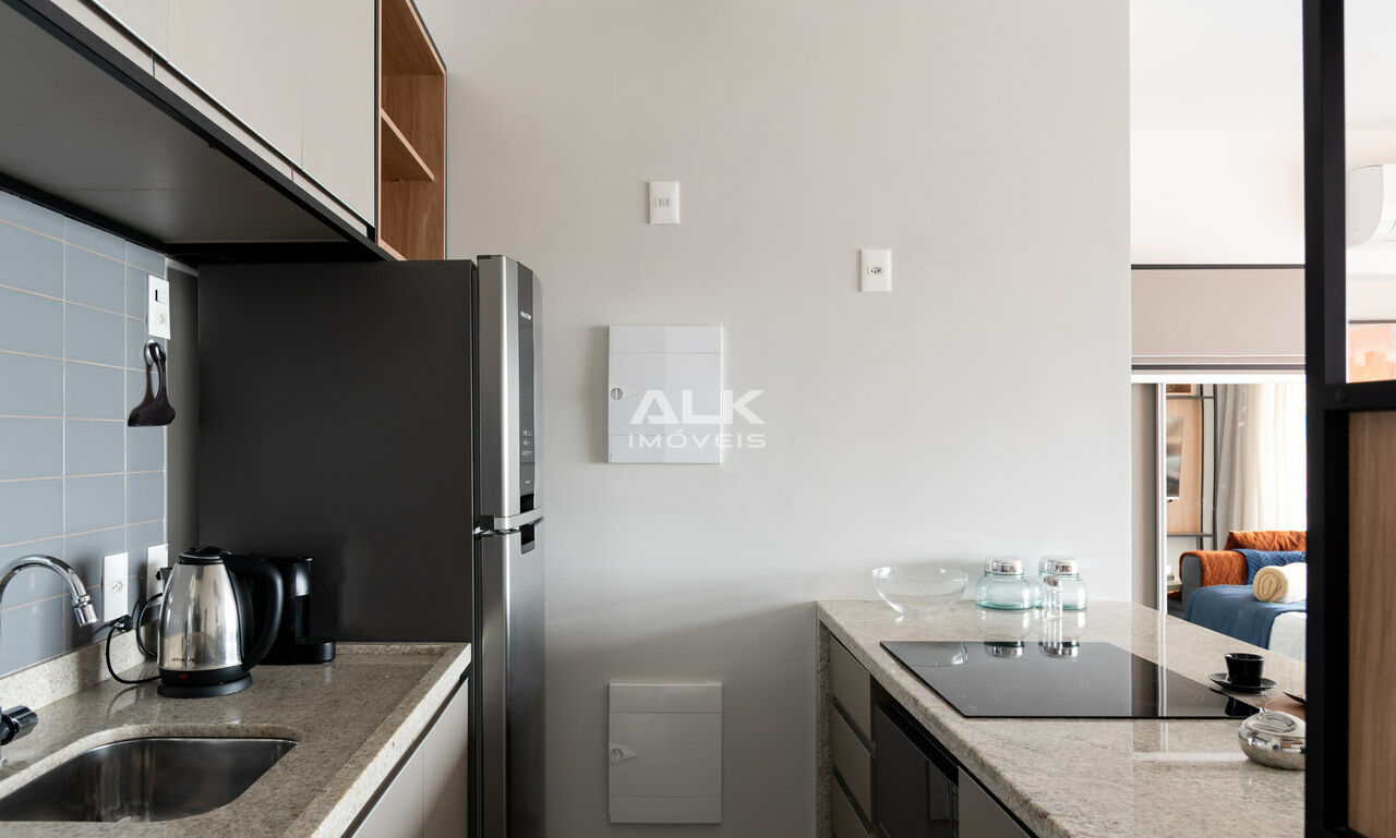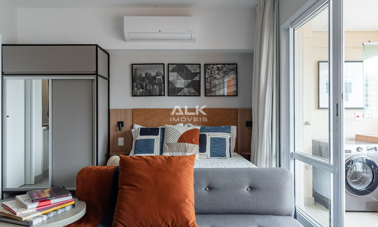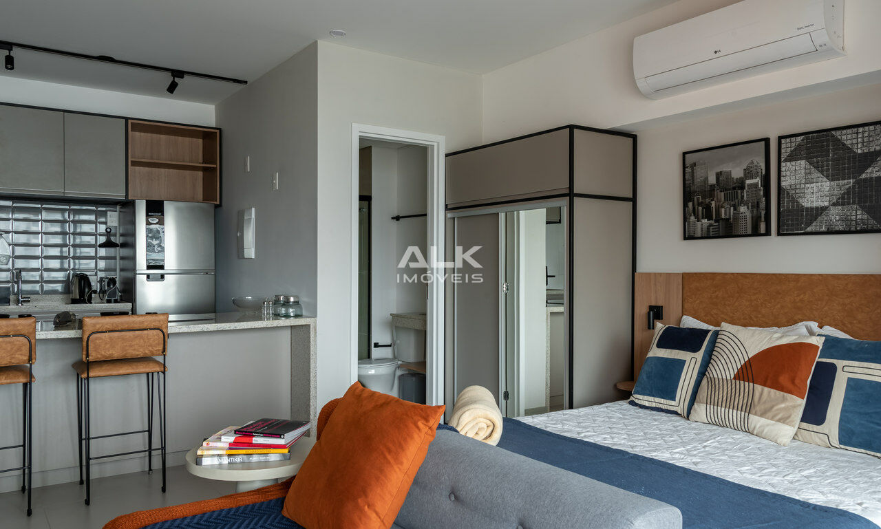 Apartamento novo, totalmente decorado com armários, arcondicionado, todos os aparelhos de cozinha. De frente para a rua, sol da manhã, com uma vista incrível, e 1 vaga na garagem.