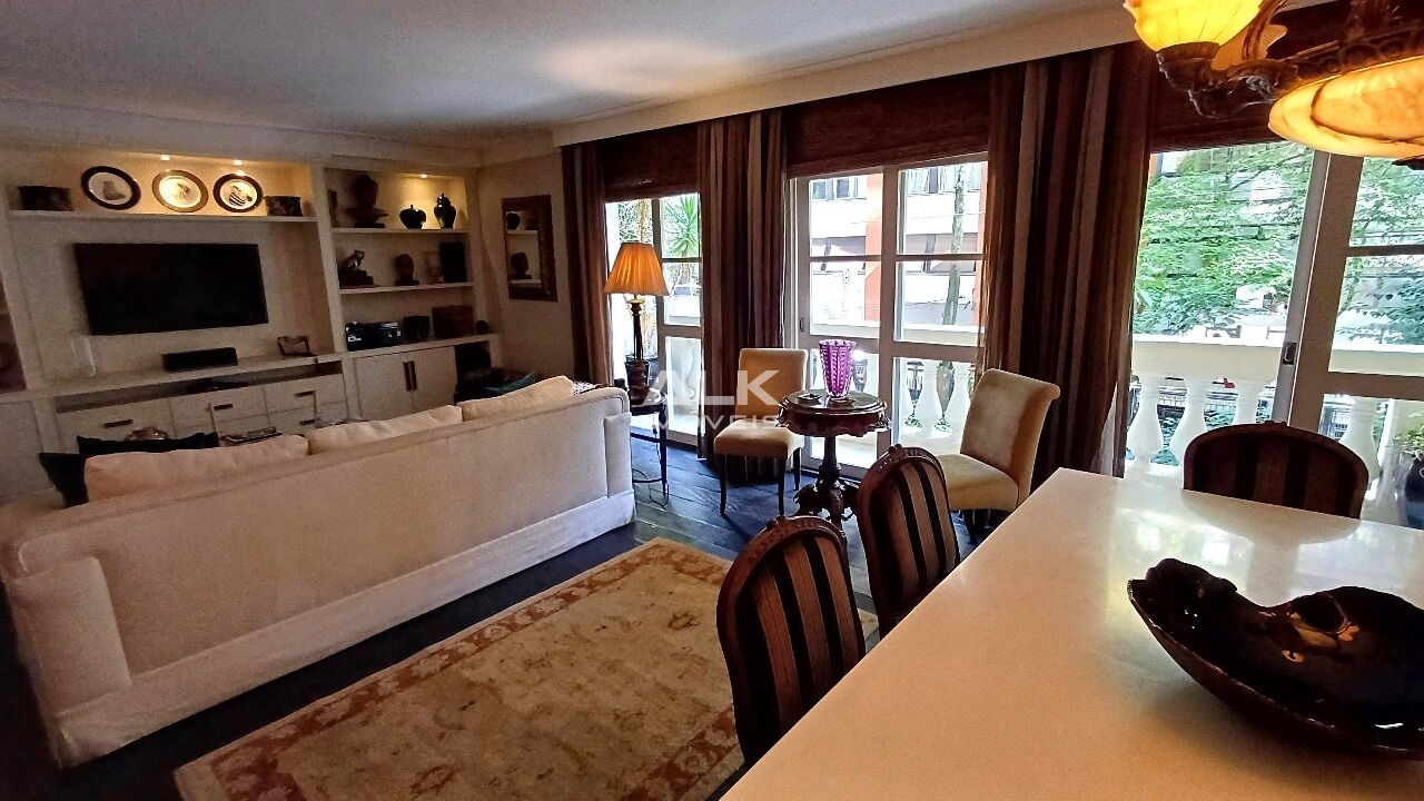 Apartamento de alto padrão no Jardim América com 166m² de área útil, totalmente reformado com projeto de arquitetura exclusivo. Os ambientes apresentam pisos em madeira de demolição e um amplo living para dois ambientes, repleto de luz natural e com terraço que oferece uma vista encantadora para a copa das árvores. A sala de jantar é elegante, acompanhada de um lavabo, cozinha planejada e uma prática minicopa. Na área íntima, o imóvel conta com 2 suítes, sendo a master com walk-in closet. Um belo escritório planejado para trabalho ou estudo. Marcenaria planejada, janelas com vidros blindados e antirruído, além de banheiro espaçoso. Banheiro social espaçoso. Há ainda sapateira, cinteiro e rouparia, tudo pensado para oferecer praticidade e sofisticação. O projeto de iluminação e o sistema de ar-condicionado contribuem para o conforto e luxo em todos os detalhes. O condomínio, de estilo neoclássico, conta com segurança 24 horas e serviço de manobrista. A localização é espetacular, próxima ao Colégio Dante Alighieri, Alumni, Shopping Market Paulista, Conjunto Nacional, Universidade Anhembi Morumbi ? Campus Paulista e Estação Consolação. Agende sua visita.