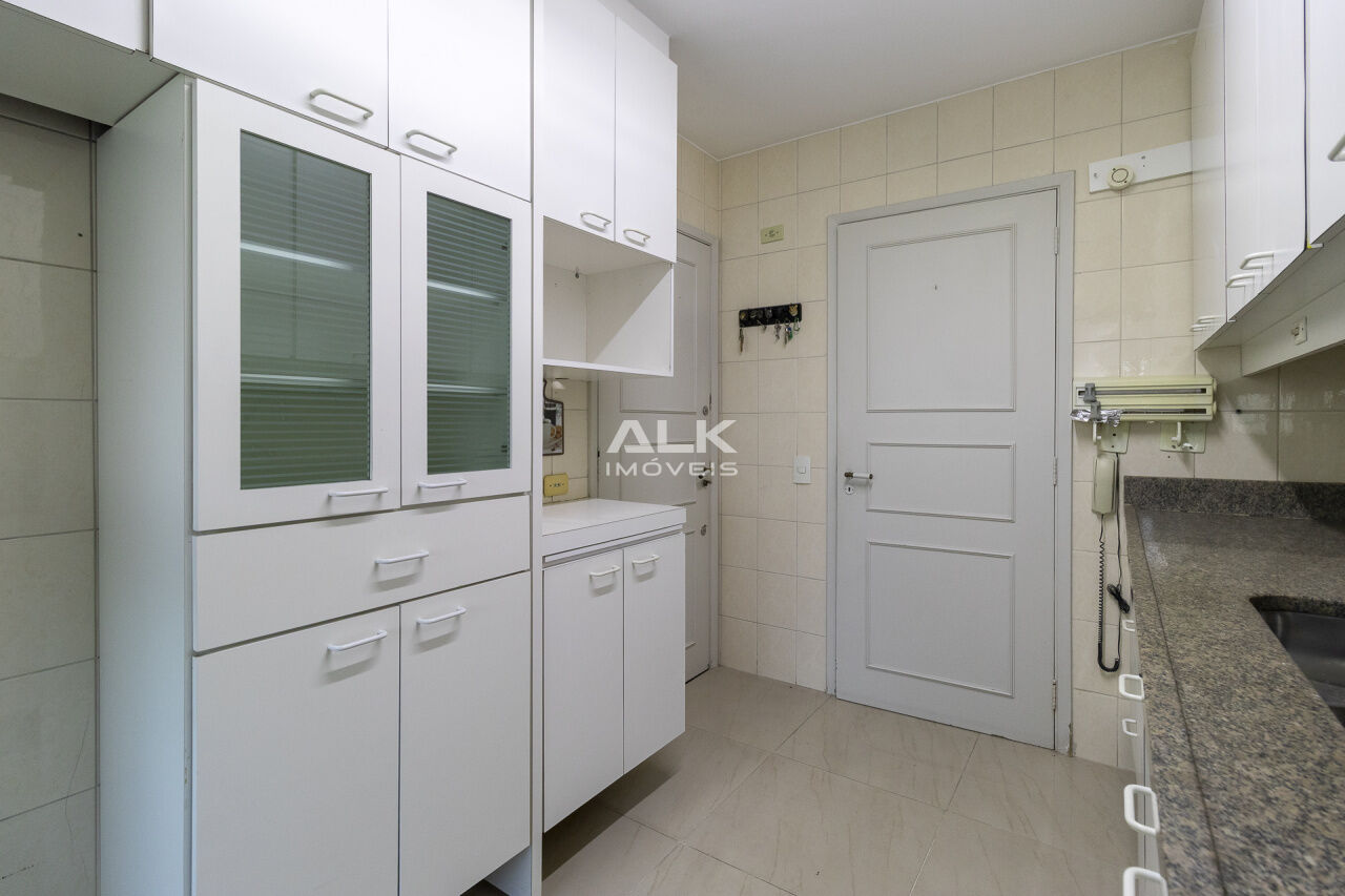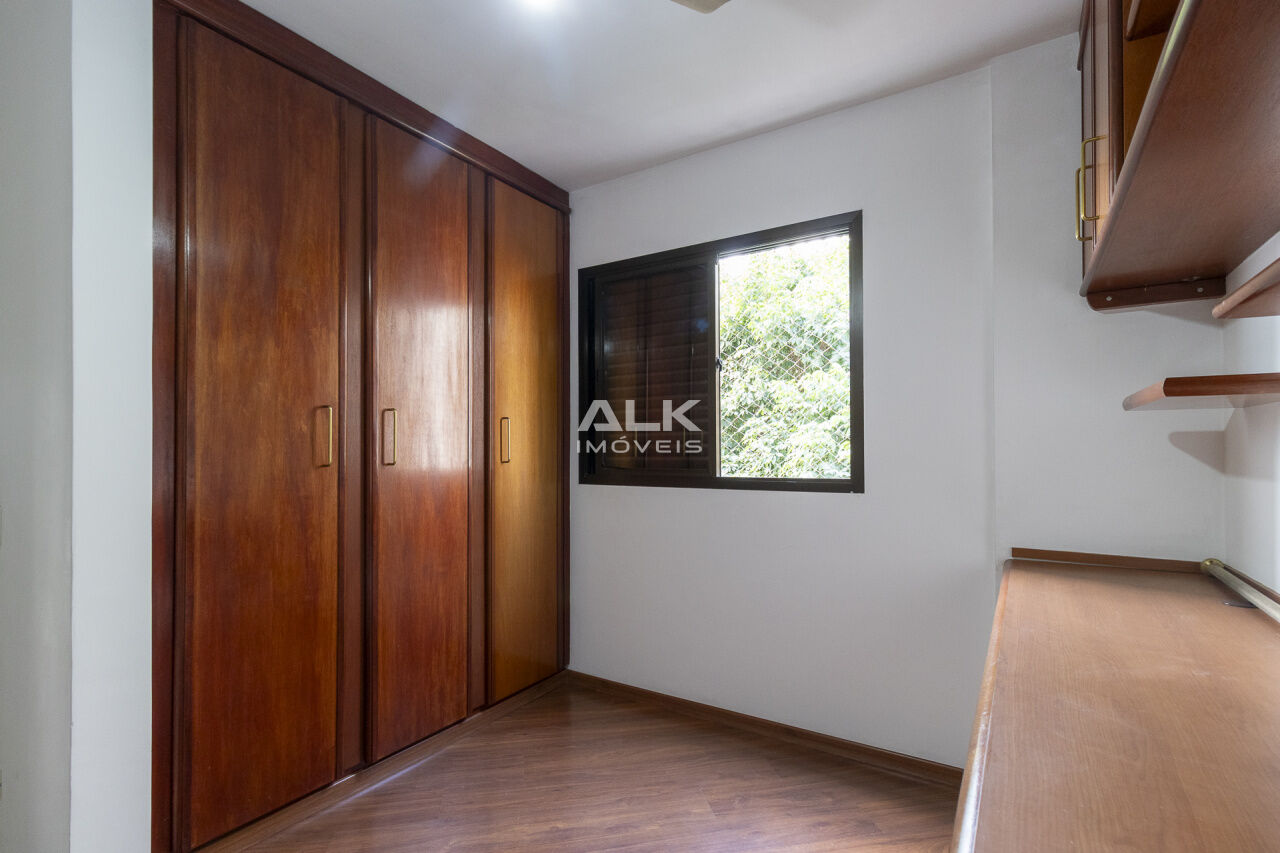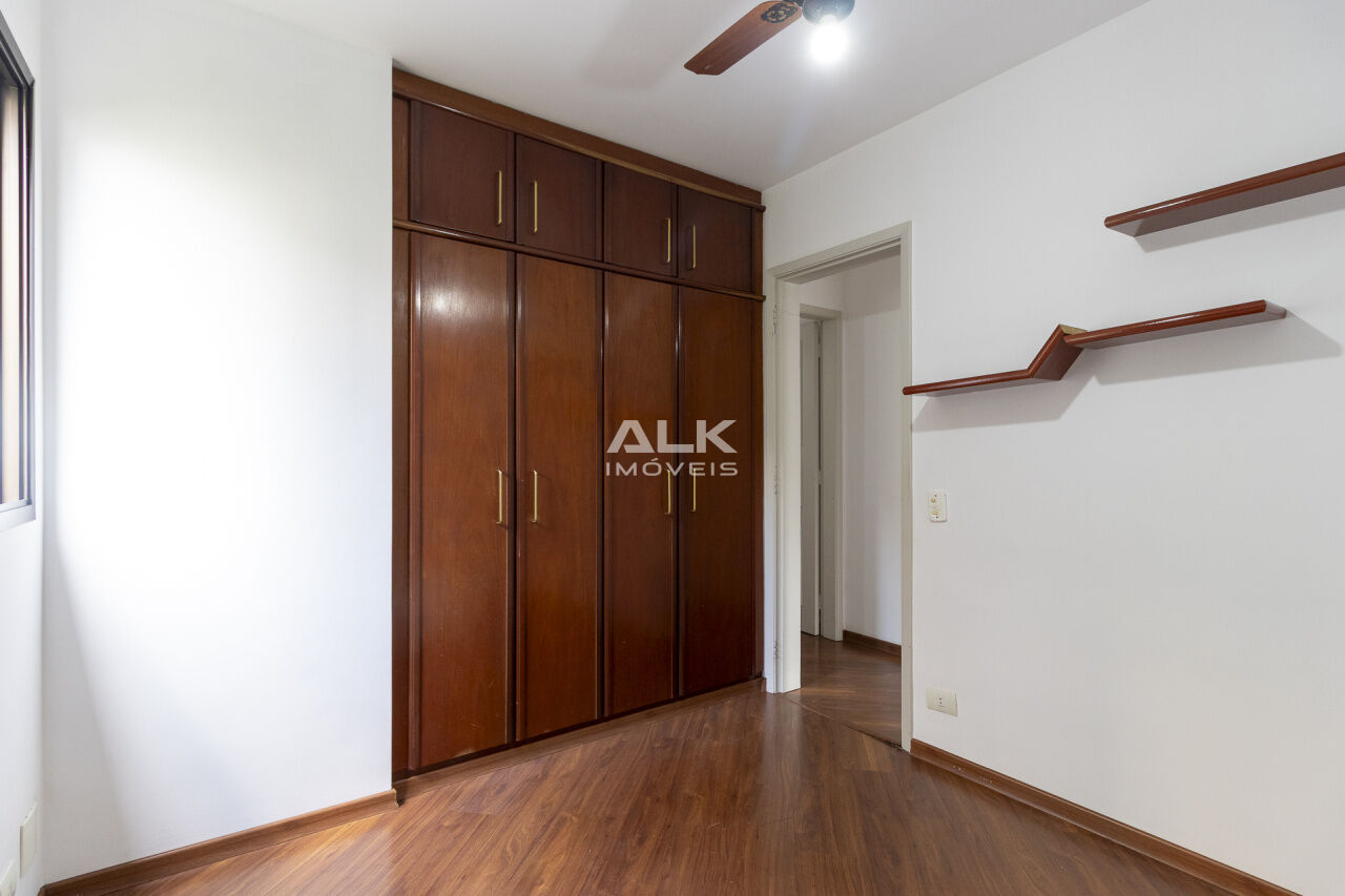 O apartamento é repleto de armários em todos os cômodos e tem piso de madeira, agregando charme e aconchego. Conta ainda com cozinha planejada, área de serviço, dormitório de empregado e banheiro de serviço. Para maior comodidade, dispõe de duas vagas determinadas de garagem.