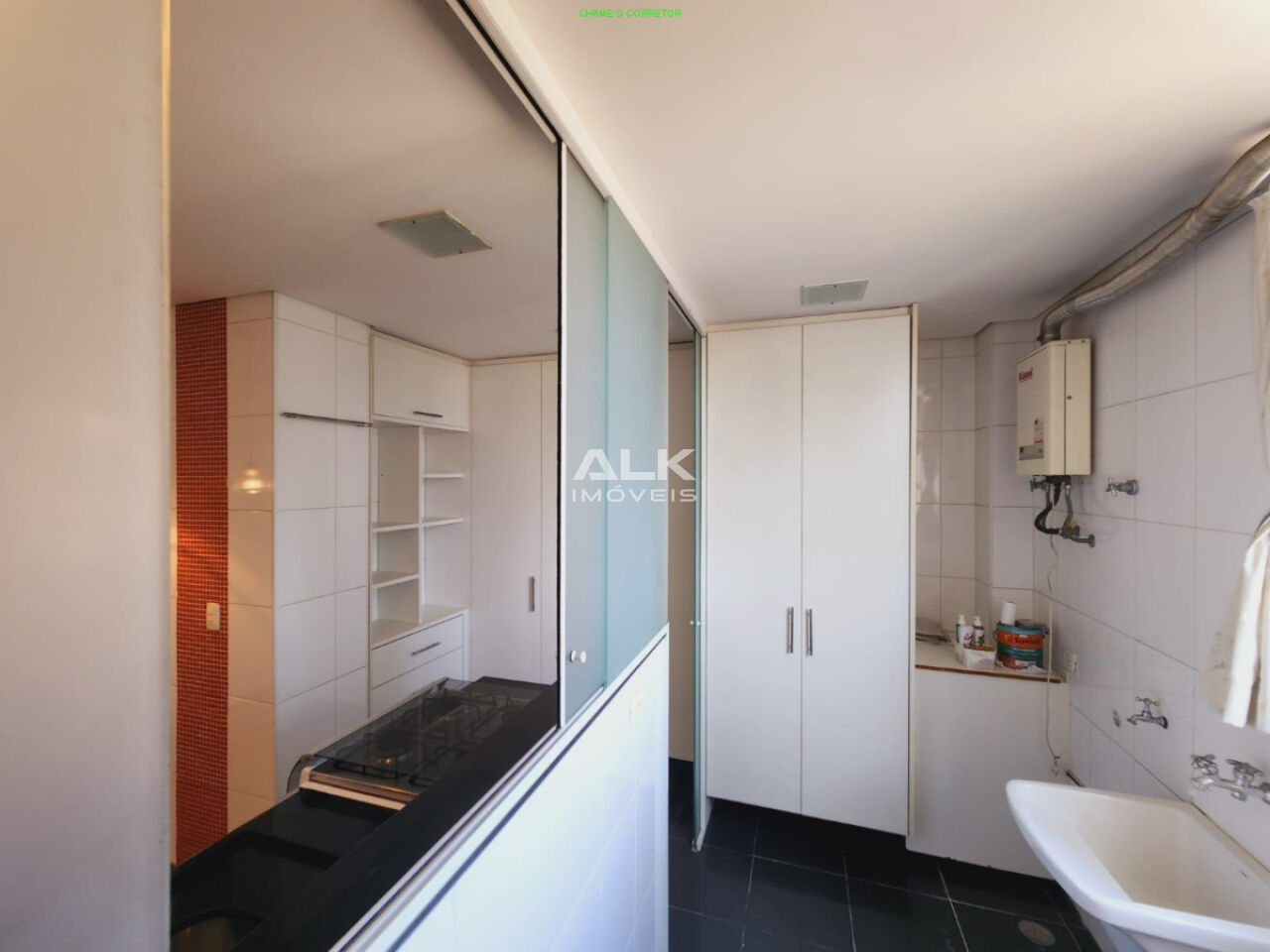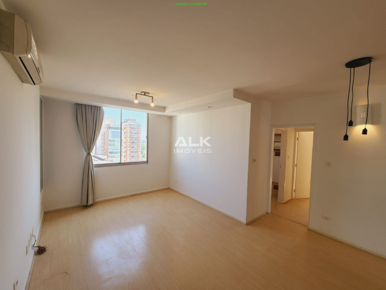 São 85m2 de área útil, sendo sala ampla em L dois ambientes com piso laminado com ar condicionado, um banheiro social, 2 dormitórios sendo um suíte com ar condicionado, cozinha ampla moderna com piso porcelanato armários novos, integrada com área de serviço.