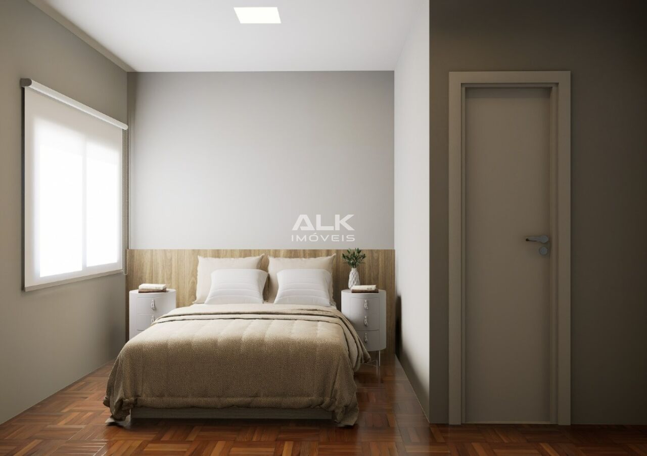 Ao entrar, você é recebido por uma sala integrada com a sala de jantar. O layout aberto permite que a luz natural invada o espaço, criando um clima leve e acolhedor. A cozinha americana, que também foi modernizada, conta com bancadas amplas, armários planejados e design funcional.