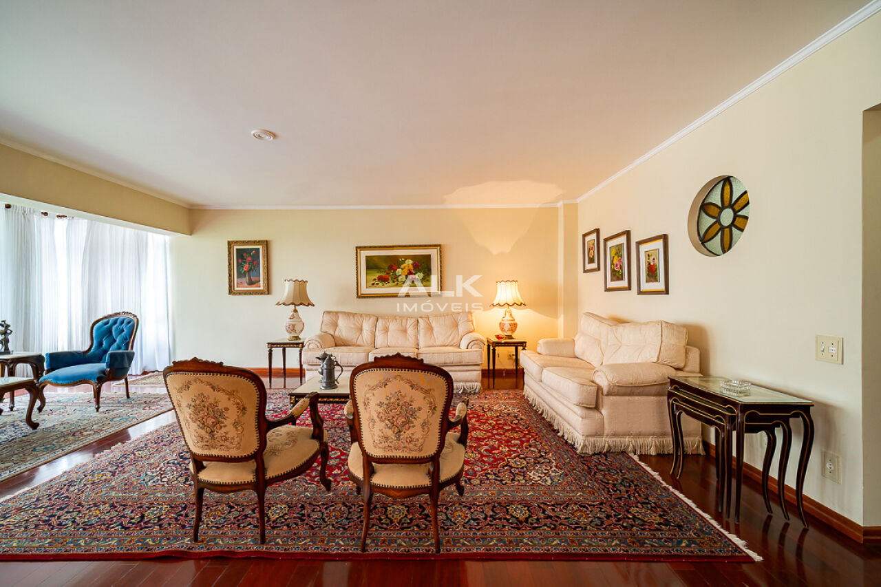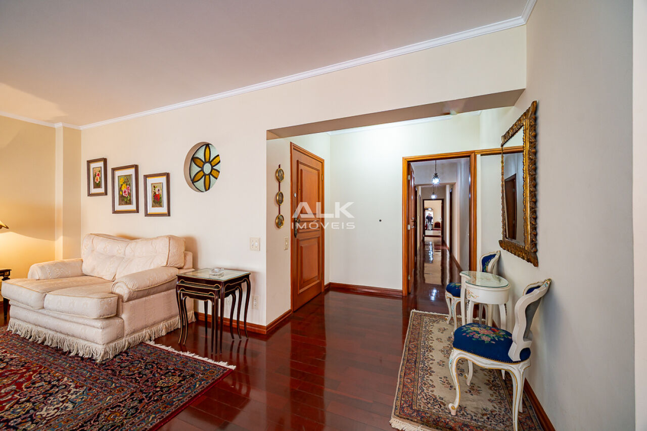 A área social impressiona com uma sala para três ambientes, perfeita para receber, relaxar e celebrar bons momentos. O piso de taco de madeira, impecável, traz um toque clássico e acolhedor a cada espaço.