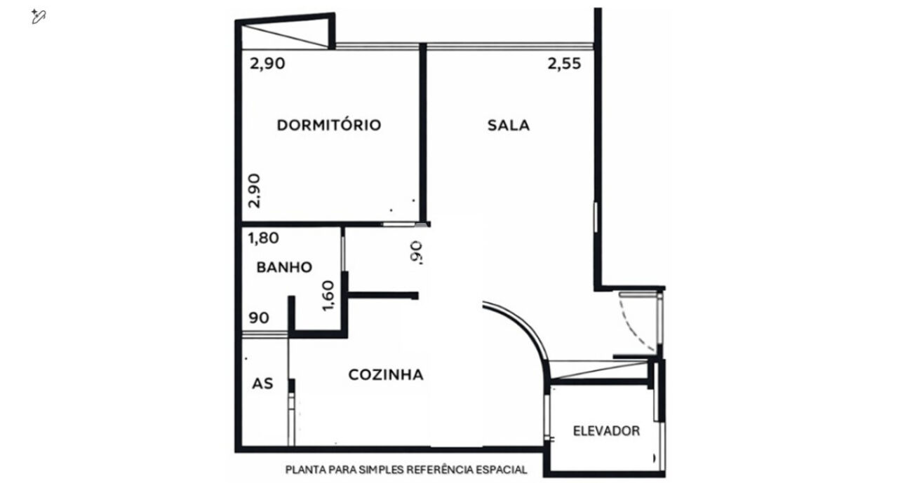 40 m² - 1 quarto- 1 banheiro - 1 vaga