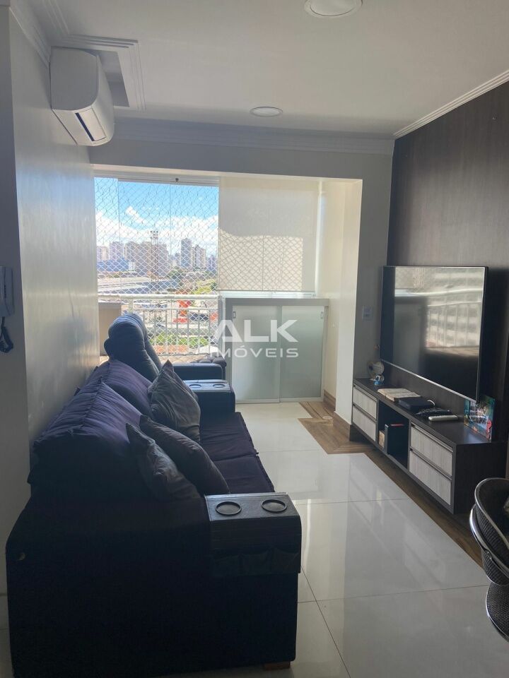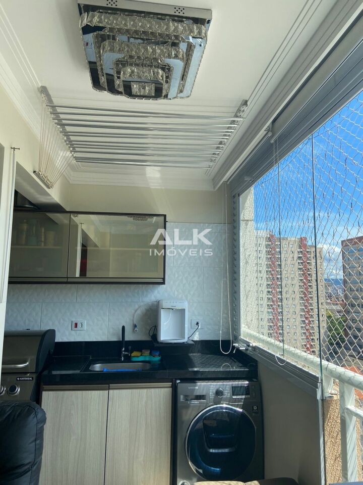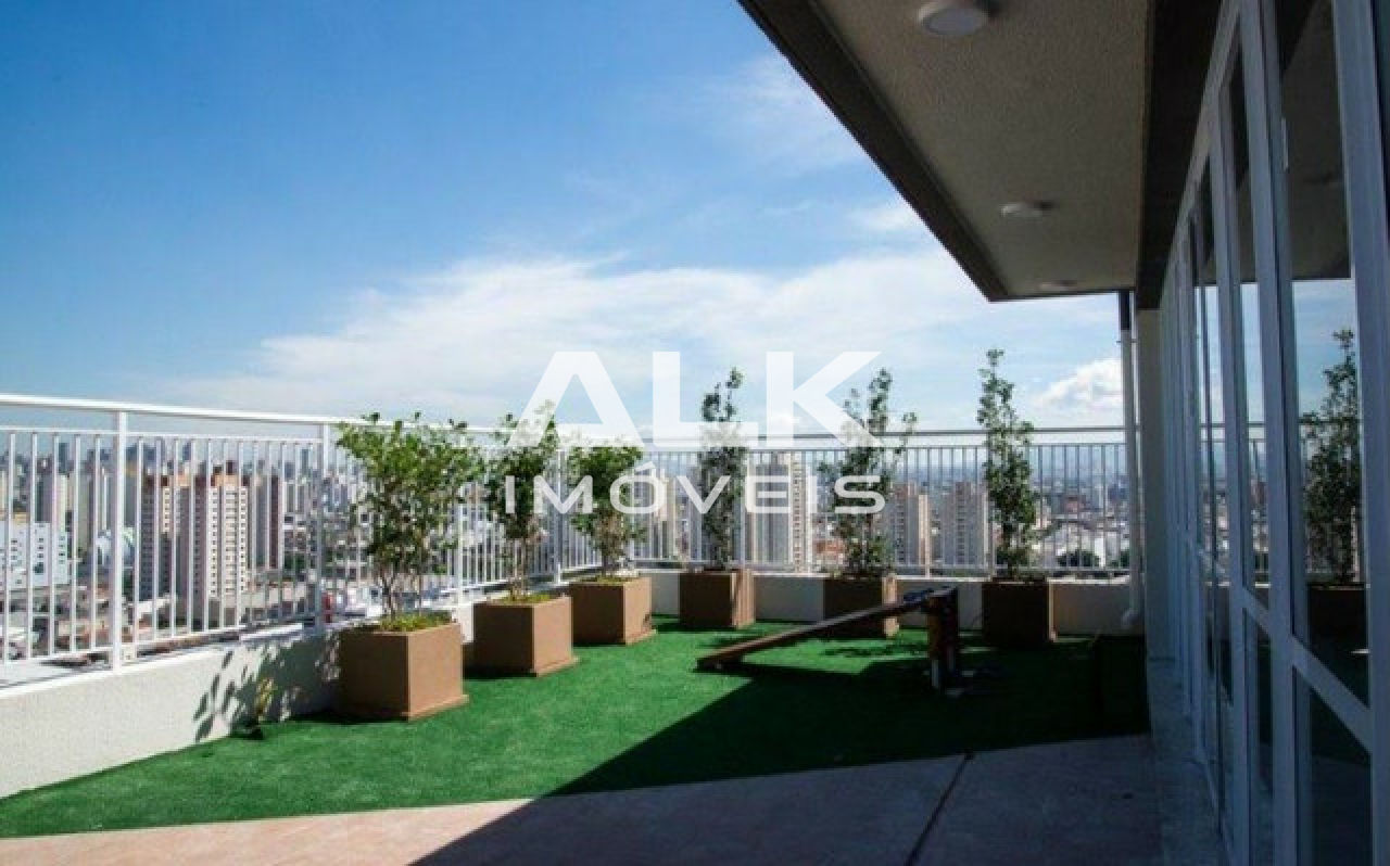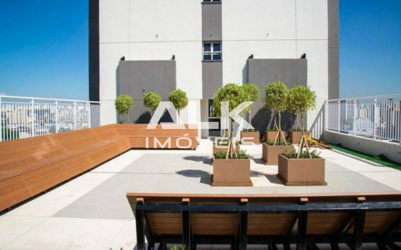 Apartamento com 2 dormitórios, área de serviço, banheiro, sala e cozinha, varanda e vaga de garagem. Prédio com academia, salão de festas, mini market, churrasqueira e sky lounge.