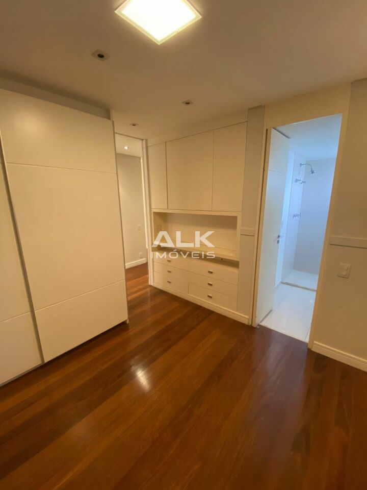 Apartamento com 3 suítes, 4 banheiros, varanda gourmet, copa, cozinha, área de serviço, dormitório com banheiro de serviço, depósito e 4 vagas de garagem.