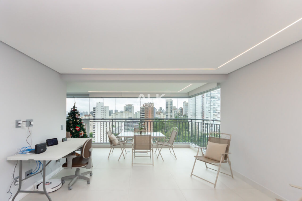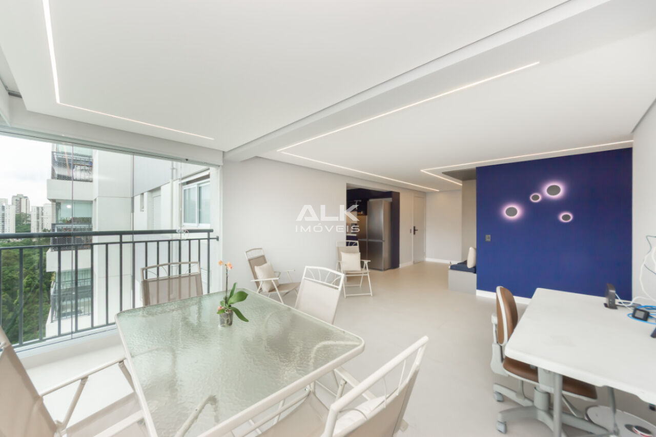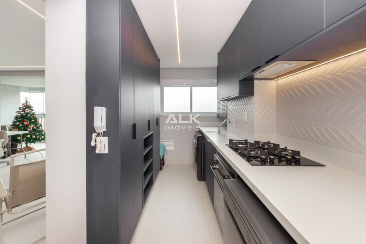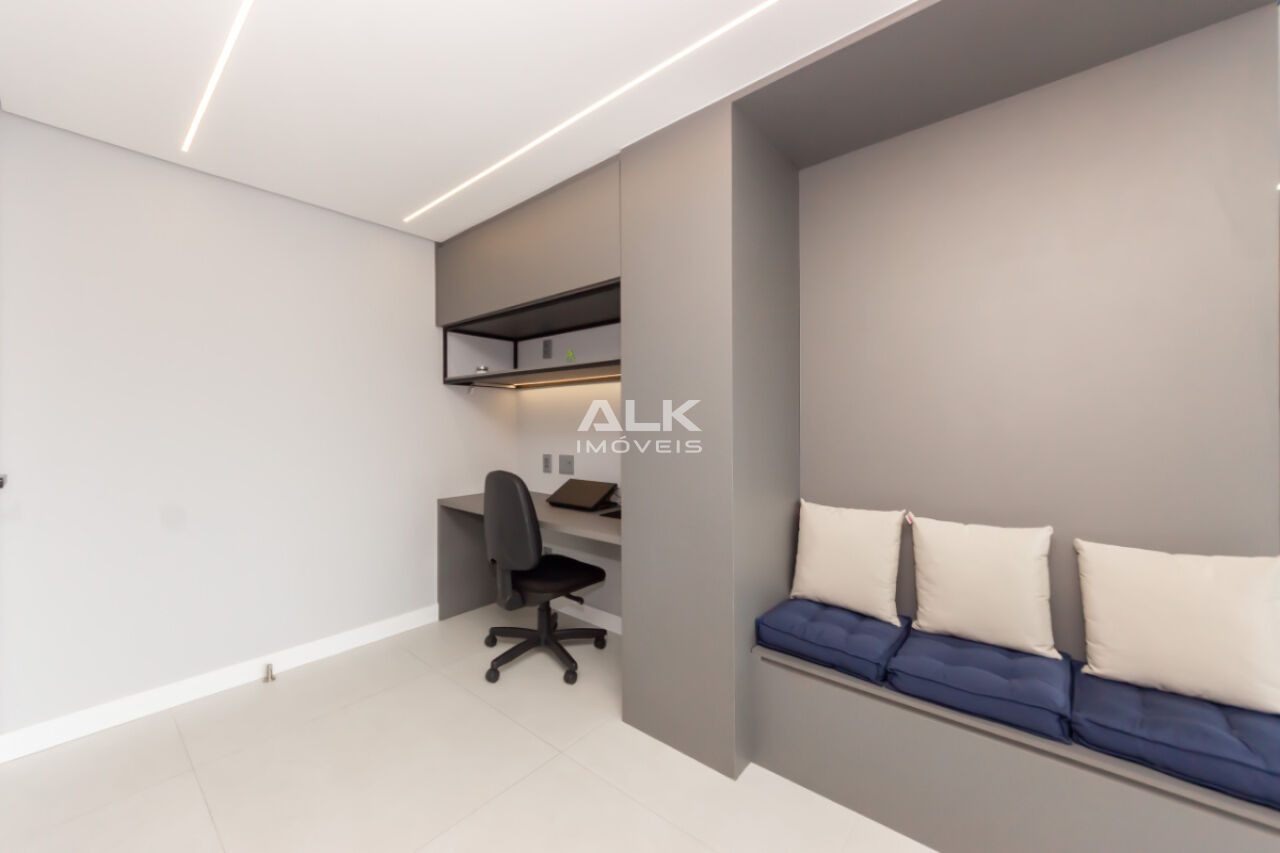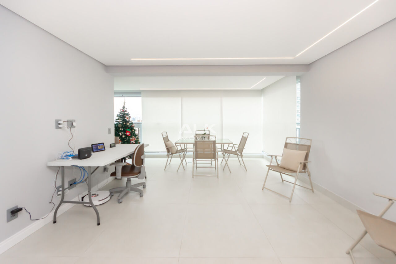 A sala ampla convida a desacelerar. A luz entra com suavidade, a varanda integrada amplia o espaço e cria o cenário perfeito para um café pela manhã, um vinho no fim do dia ou conversas que se estendem sem pressa, além de uma vista permanente. Tudo é automatizado ,iluminaçãoe persianas trazendo conforto, praticidade e aquela sensação gostosa de morar em um lugar que cuida de você.
