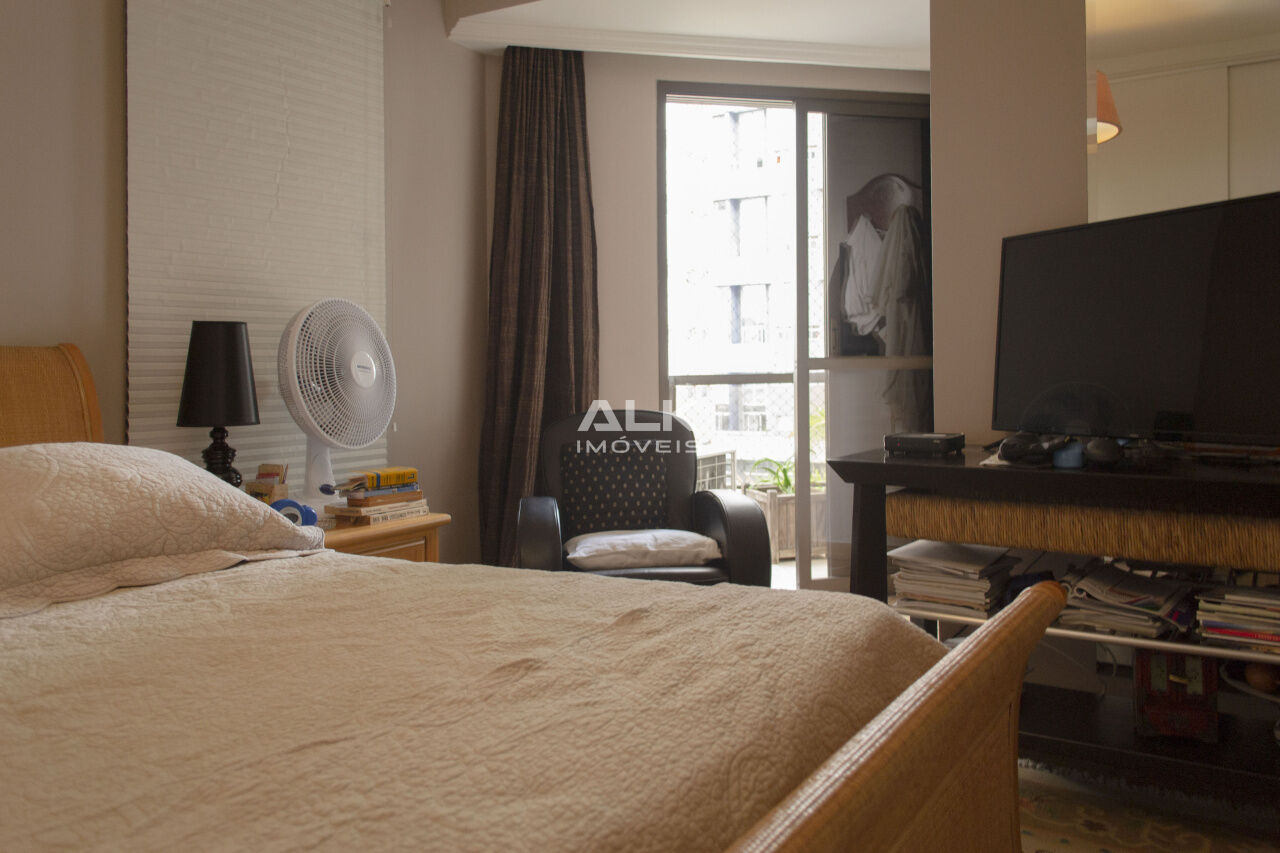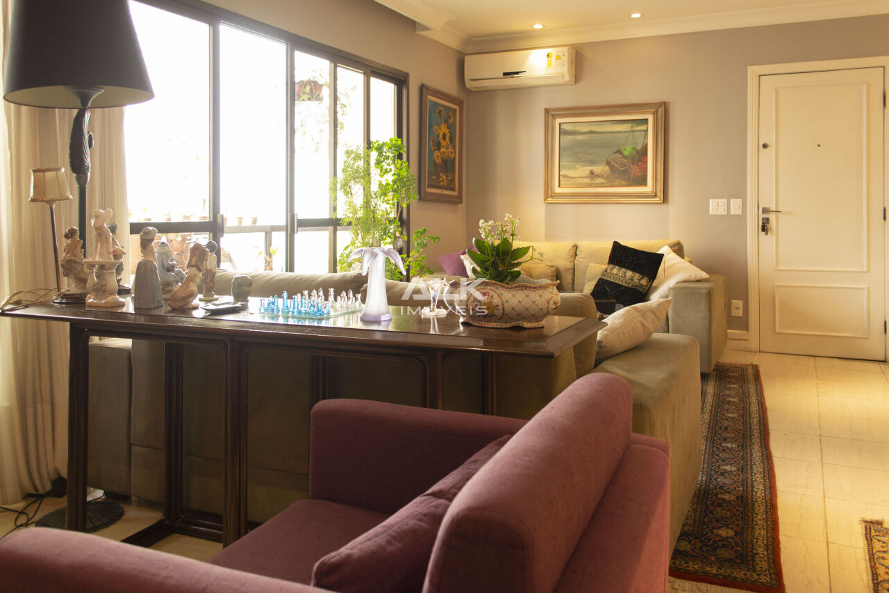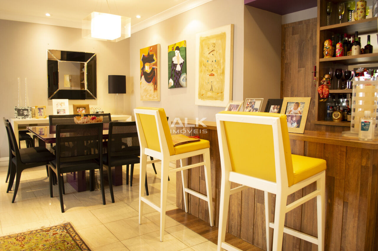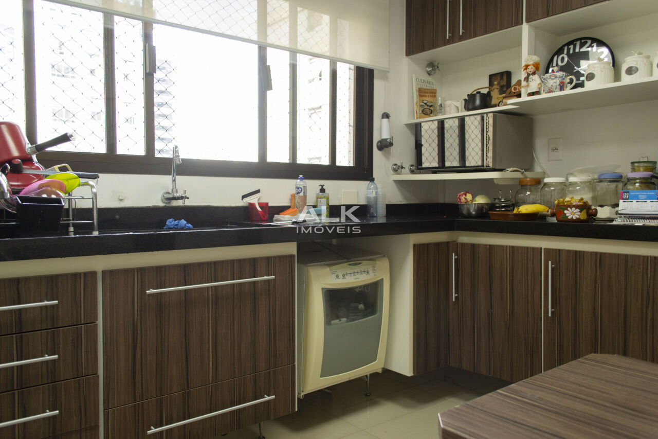 São 155m² de área útil, atualmente com 3 dormitórios, sendo uma suíte, todos com armários embutidos. Varanda, ampla cozinha repleta de armários, lavanderia, quarto e banheiro de serviço e 2 vagas de garagem. O condomínio foi reformado recentemente e teve sua fachada totalmente repaginada com inclusão de paisagismo nos jardins. As áreas comuns também foram reformadas e contam com churrasqueira, piscina, sala de ginástica, salão de festa e salão de jogos.